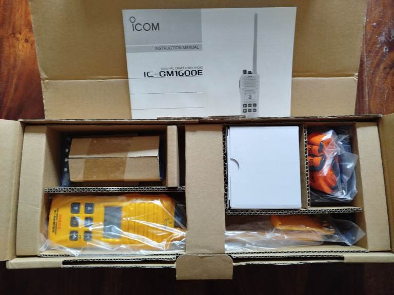 Portable GMDSS VHF Marine Transceiver, complete with Antenna, Battery, Battery Charger, Handbook, Carry Strap, brand new, still boxed, Model Icom 1600e. Ideal for small boat/vessel.