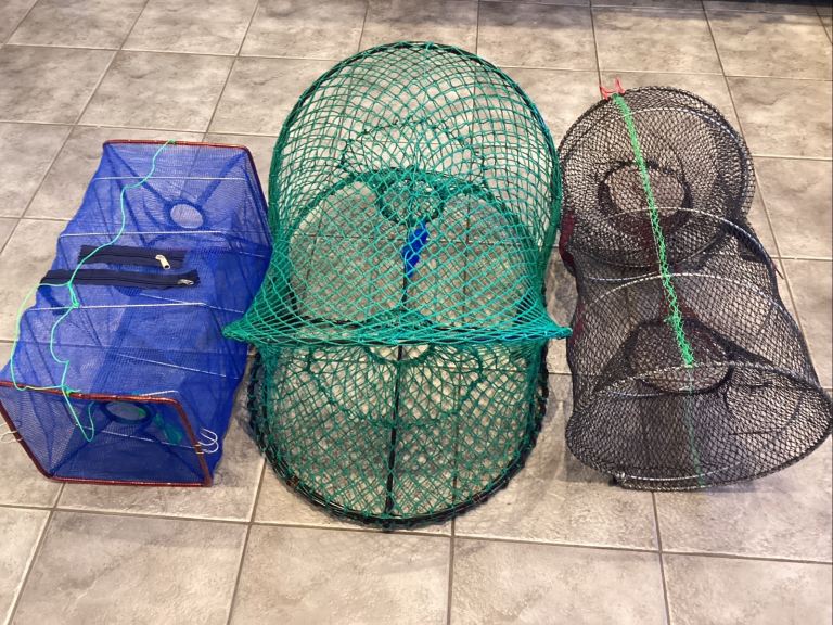 3 unused small fishing pots. Was a generous gift to a skipper who does not eat seafood!