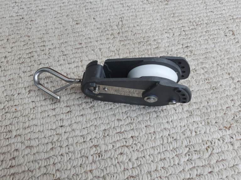 Snatch block. Swivel clip on fitting. 60mm sheave. Don't know the make but model is PD6/G6A. Used but in very good condition.