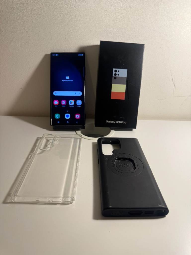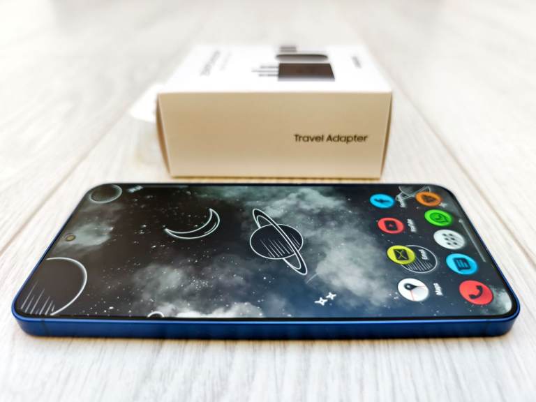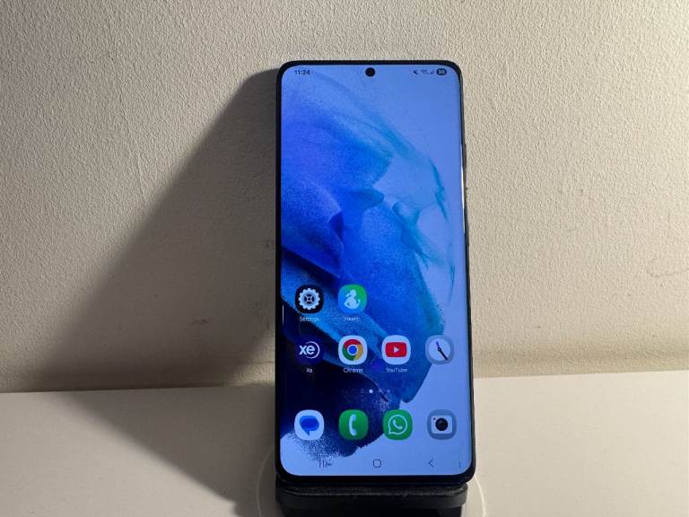 Phone is in good condition. Couple of minor marks, as can be seen in pictures. There is beautiful matte screen protector on. Comes with unused Samsung superfast charger and cable.