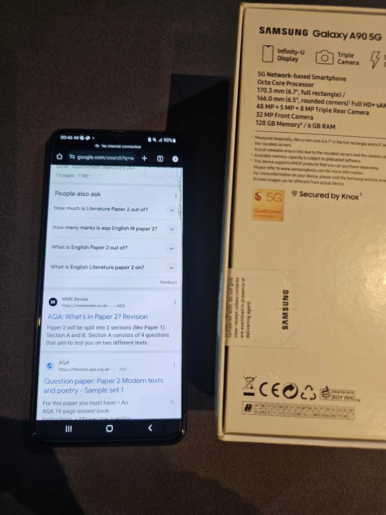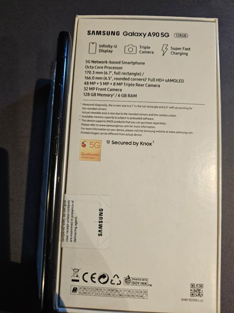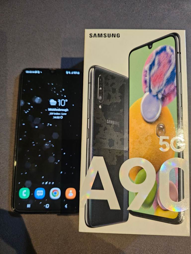 Samsung dual sim a90 128gb phone, this phone can take 2 sim cards and it can also take an sd card to make the storage even bigger, in very good condition and no damage to screen as always had screen protector on it, camera lens are working great, a nice tidy phone