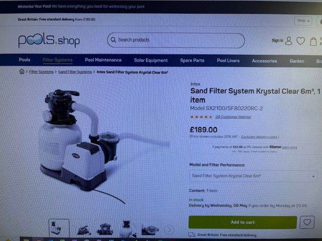Intex 4.5m x 2.2m 84cm deep. Sun Spring 6.7kw Heat Pump can easily keep temperature up to 26-30degC Sand filter with excess capacity. Intex SF80220-2 Everything 4 years old. Insulated cover and overall cover. Pool ladder, slide as seen in photo. Pool cleaning kit, vacum, chlorine kit. All pipe work and a box of spares. All original booklets. Original spend approximately £1,500