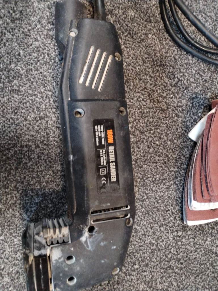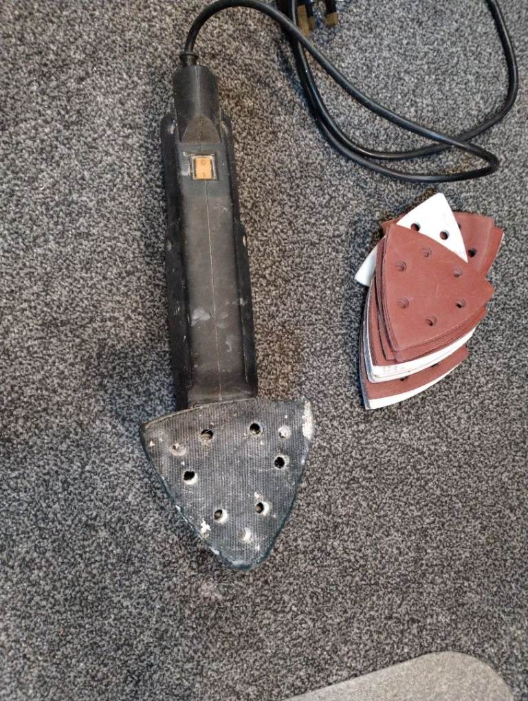 Wickes electrical detail sander with a heap of sand paper triangles. Can have a collection bag added to it. In good working order
