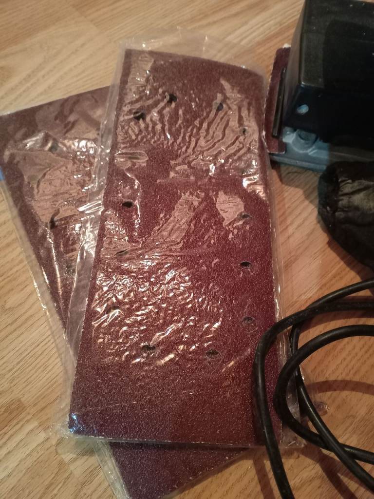 This has been a great flat sheet sander and can be used for most sanding jobs. It's 280W so pretty powerful and comes with 2 packs of sanding sheets, dust collection bag and the instruction manual. It's in full working order with just the usual wear and tear.