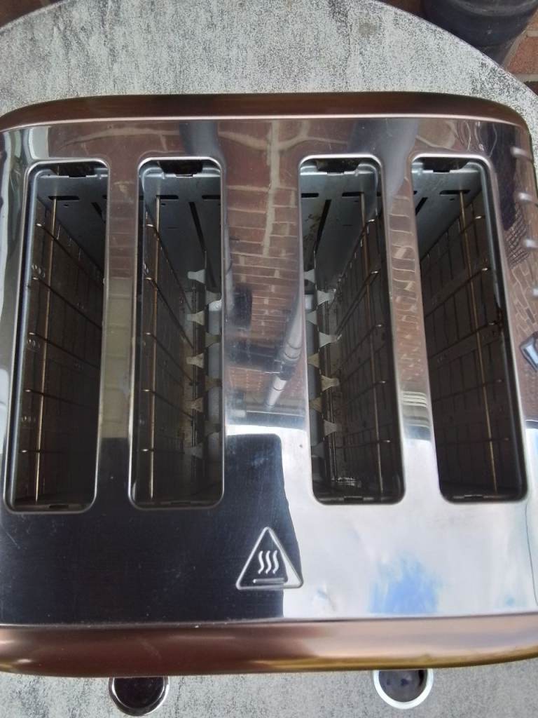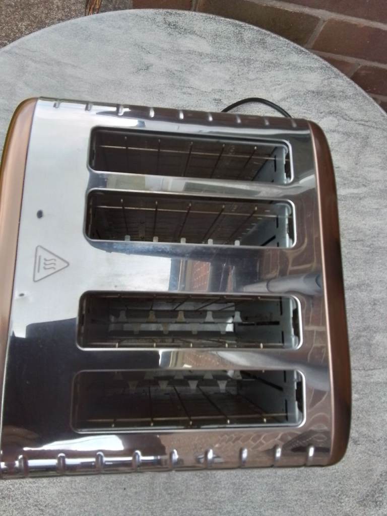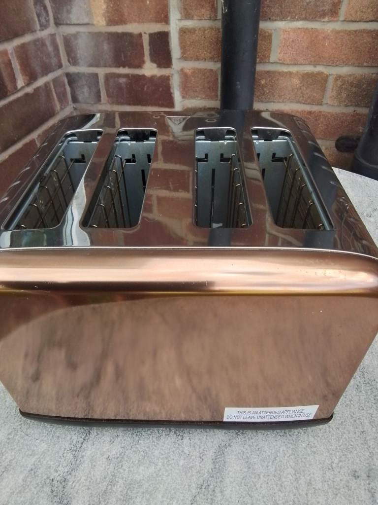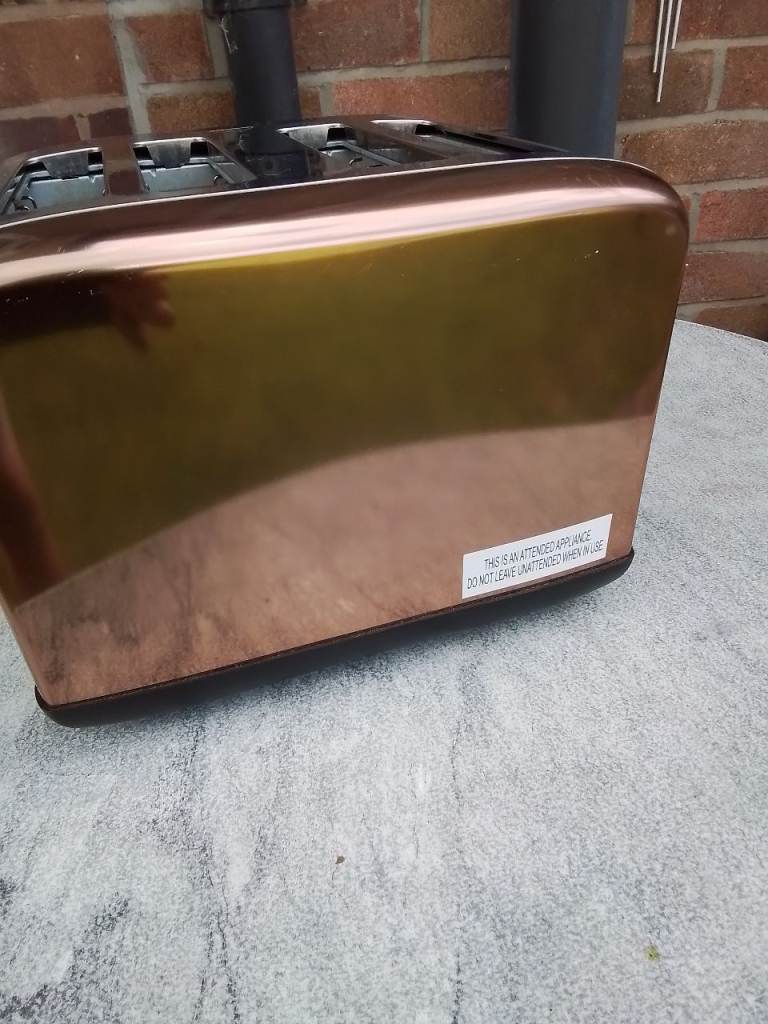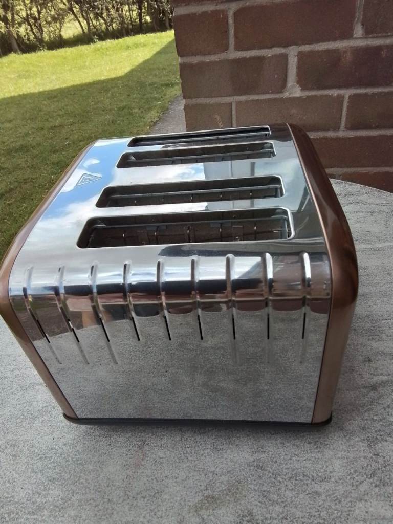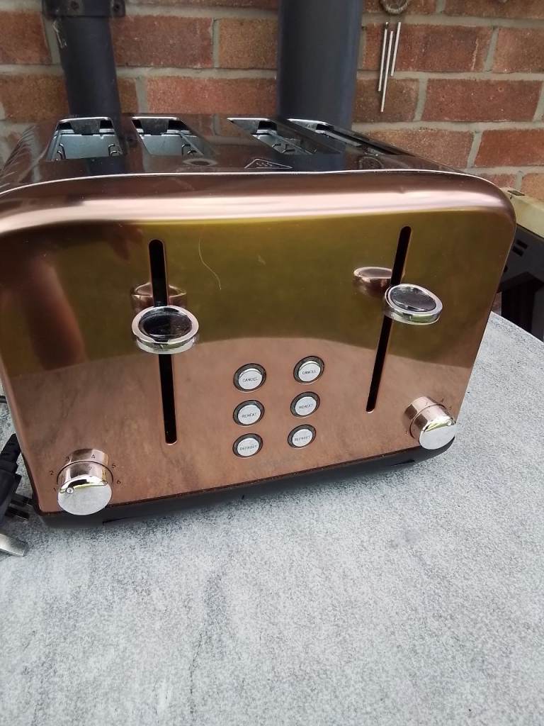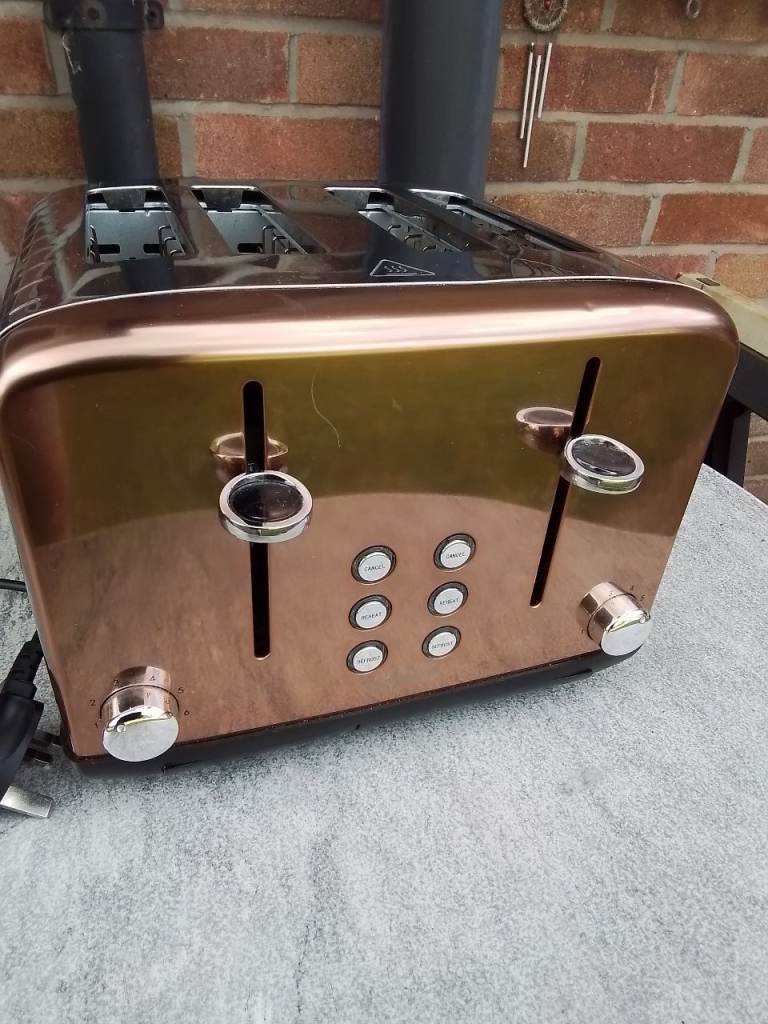 COOKWORKS 4 SLICE COPPER SILVER TONE TOASTER THREE SETTINGS AS NEW