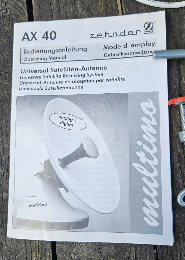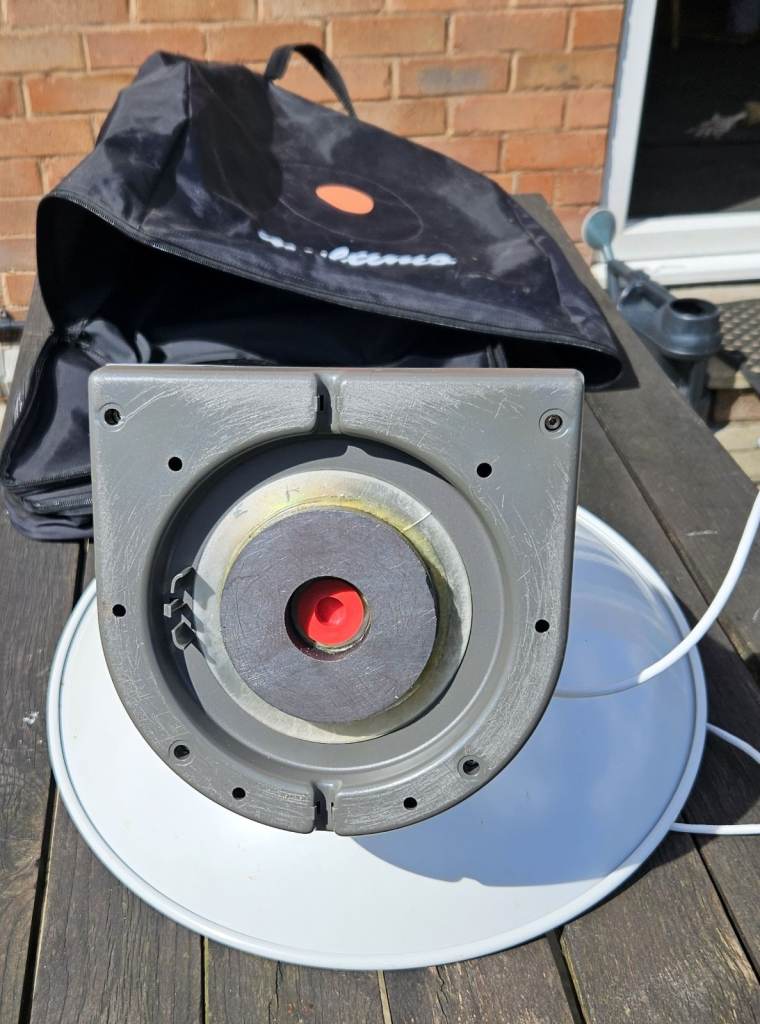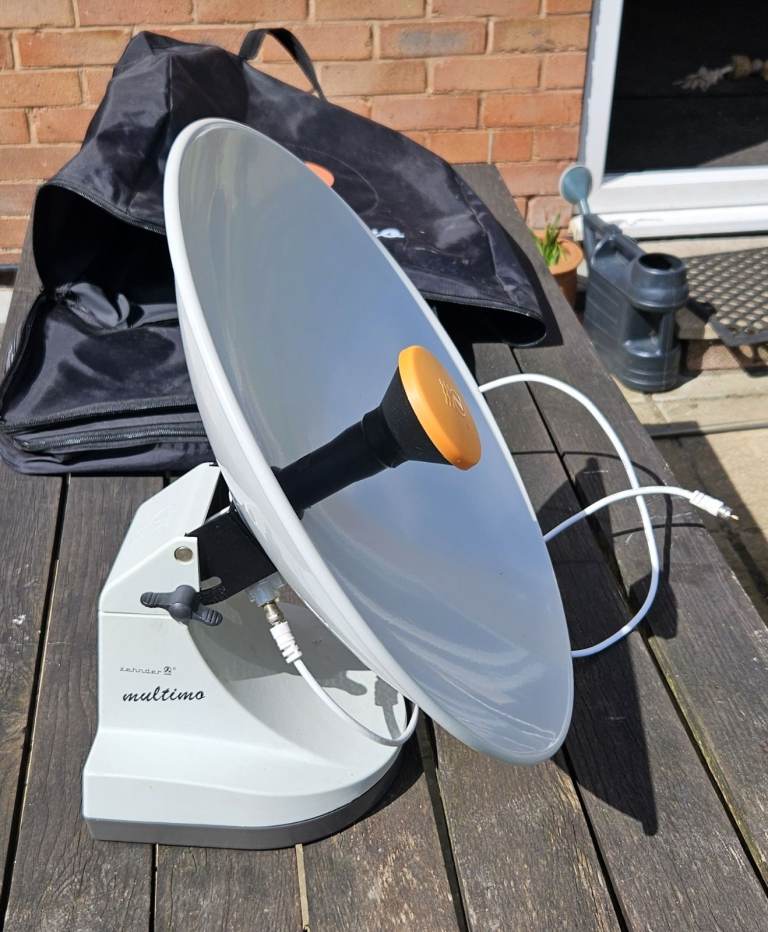 A well proven high gain Cassigrain style parabolic satellite antenna manufactured by Zehnder of Germany, which provides a compact product that can be packed away neatly when not required. This has been in use on a narrow-boat and is fitted with a magnetic adapter for ease of mounting to any steel surface.
