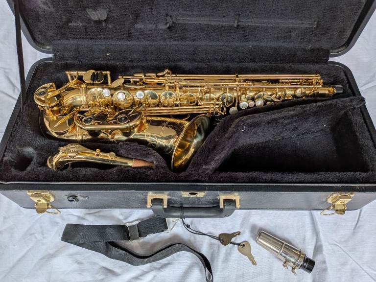I am selling this saxophone for the widow of a friend who recently passed. It is not all that old, my friend was unable to play it for some years, and it is in excellent condition (see photos). He bought it from Howarth of London, the Chiltern brand is Howarth's own brand of musical instruments and the Chiltern badge ensures a quality instrument. Howarth's is a very reputable London maker and supplier of woodwind instruments. The saxophone comes with alternative necks and a Yamaha 4c mouthpiece and sling. Also available is an Otto Link "Super" Tone Master 6* metal mouthpiece, price negotiable.