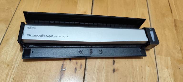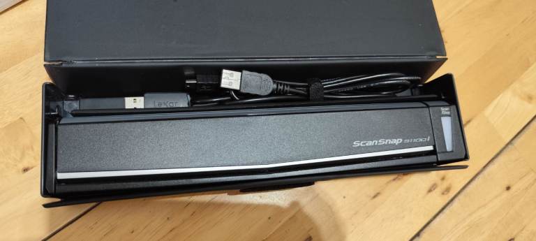 Mobile scanner ScanSnap S1100i complete with software. USB powered for home or mobile use, in perfect working order. Collection is from Aldershot Hampshire.