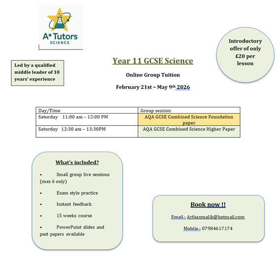 At A★ Tutors, we focus exclusively on Science. All our tutors are experienced Middle Leaders in Ealing schools, skilled at identifying high‑impact exam topics, strengthening essential numeracy and literacy skills, and breaking down difficult scientific concepts.