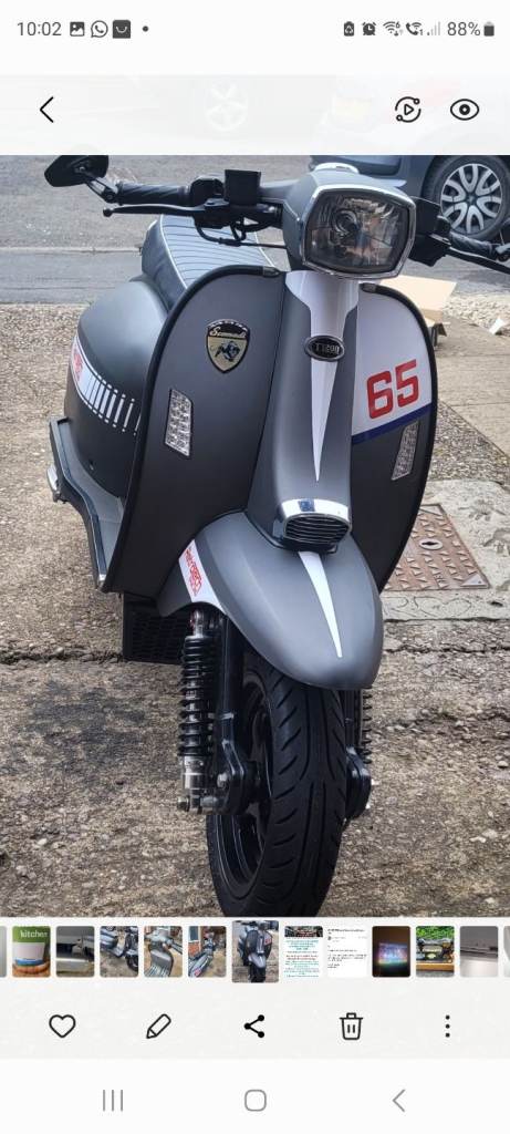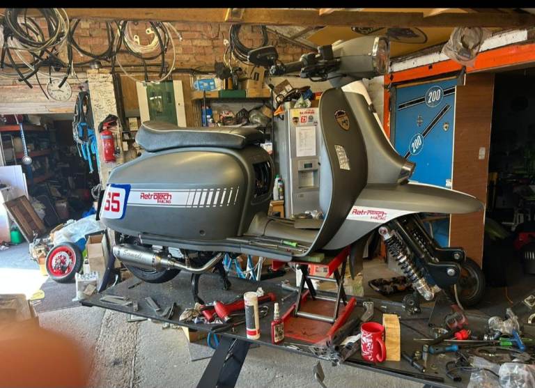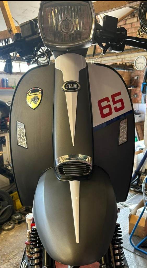Scomadi TL200 Stage 4 , great looking scooter.Not many mat gray around completely rebuilt with new engine and lots of new parts by retrotech racing (Dave Wilson) looks amazing drives great quick and smooth always in The Dry, never been out in the wet, only had it 10 months.So it's as new. £3200