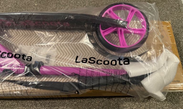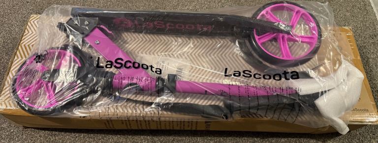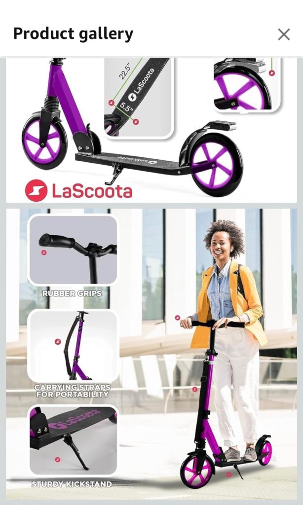 Has a strap to carry once folded and has a stand too. Great scooter my son has one already but it’s old now.