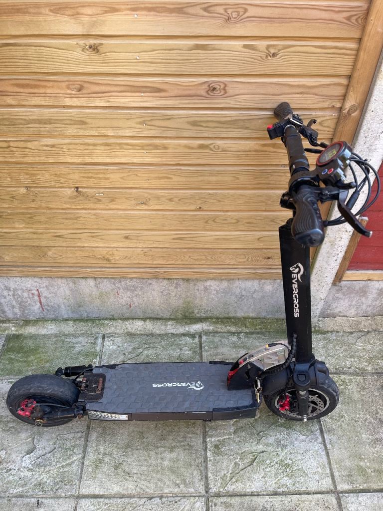 Hi - I have for sale this Evercross H5 electric scooter. It’s in used condition, but running fine. No charger. You need new disc for the back wheel for the brakes. The brake pads needs changing as well. Its charged with half battery so you are more than welcome to try it. Any questions - please let me know. Thank you.