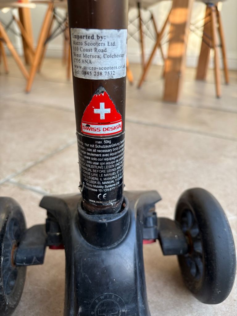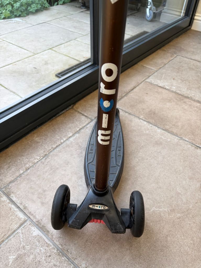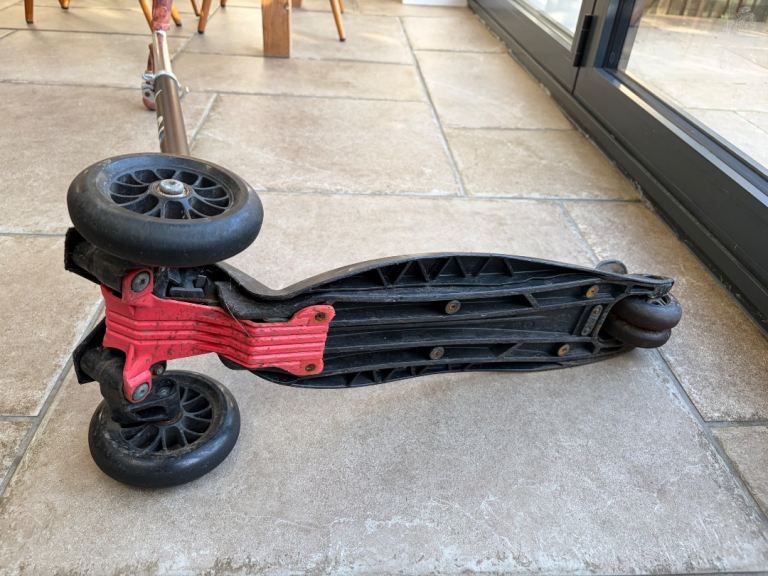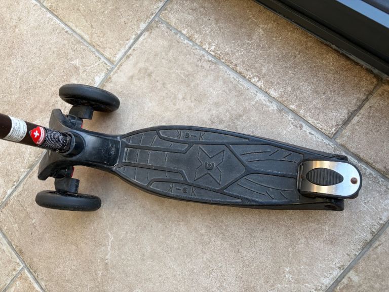 The Maxi Micro Scooter Deluxe in black and red is an adjustable 3-wheel scooter suitable for kids up to 50kg. Made of durable plastic, this push scooter is designed for outdoor play and activities. With adjustable height and a sturdy construction, it is suitable for children aged 7 and above, as well as for older teenagers and adults. The Maxi Micro Scooter Deluxe offers a fun and safe way to stay active and engage in physical activities.