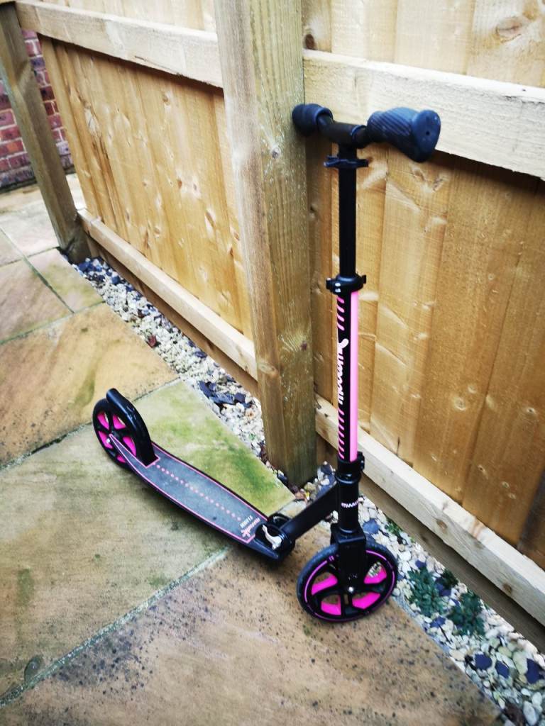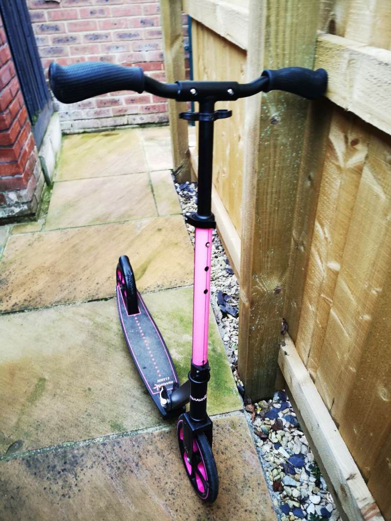 Used about 10 times. Good scooter with stand and folding mechanism.