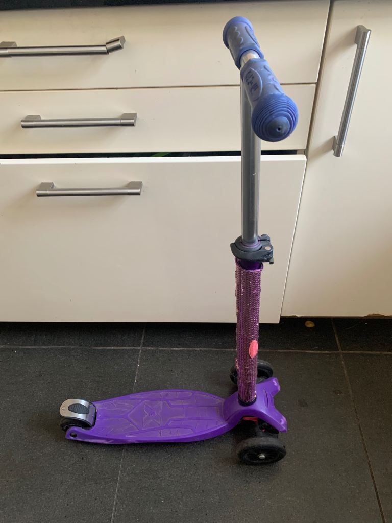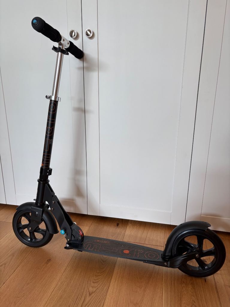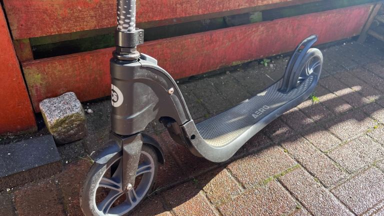 Front and rear calliper brakes make stopping quicker than standard scooters.