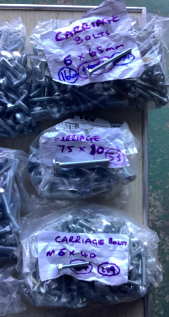 I also have large numbers of Carriage & Coach Screws, Hex Bolts, Nails and Small screws to be sold shortly, see other adds.