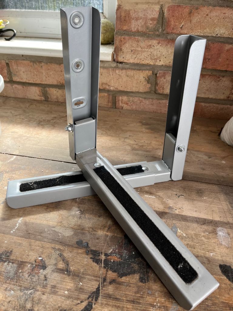 Microwave oven shelf, space saving, adjustable depth with anti- slide pads. Max. Weight 45kg. Very sturdy.
