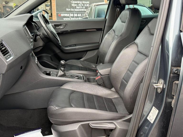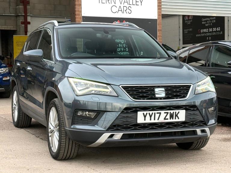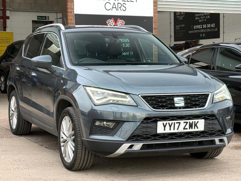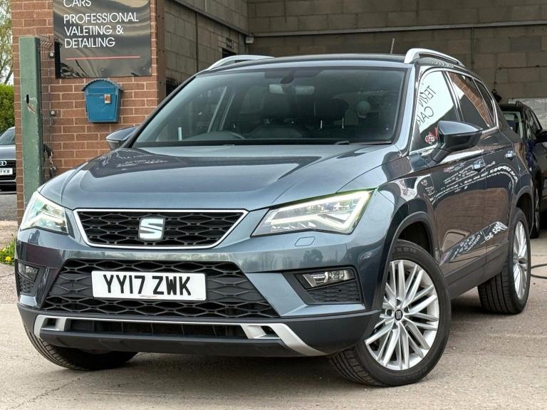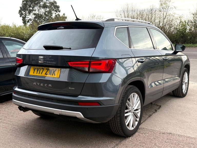 Boasting a full service history with its last service completed at 87,546 miles on 2025-10-06, this 2017 SEAT Ateca TDI XCELLENCE is a well maintained example that had Seat dealership servicing to June 2022 at 51811mi when Cambelt/Water pump was replaced. This Four Wheel Drive model features a 2.0L Diesel Engine and meets Euro 6 emissions standards. With only two previous owners, this Ateca comes with a 6 month warranty and a 12 month MOT provided on purchase. Rodium Grey Metallic with full Black Leather interior, with other notable features including Satnav Media DAB radio system with a rear view camera & parking assistance, a winter pack with heated seats, and a convenience pack with automatic headlights. It also benefits from full LED headlights and dual zone climate control for your comfort. All handbooks. 2 x keys. We sell with a new MOT & 6 Months Warrantywise Gold Warranty. 12 Months AA Breakdown Membership included. AA Driveaway 5 Day Insurance available - Only £44.99 NEED FINANCE? No Problem - SAF Registered. Hire purchase rates from 9.9% APR & PCP available, please ask. Simply click 'Apply for finance' on our website [Website URL removed]. We are a FCA registered dealership.This SEAT Ateca stands out with its impressive fuel economy, achieving a highlight of 55 mpg, which is better than many similar vehicles. Its low CO2 emissions also contribute to its appeal, alongside a low insurance group making it an economical choice. Furthermore, you will appreciate the large boot space, offering ample room for all your needs.