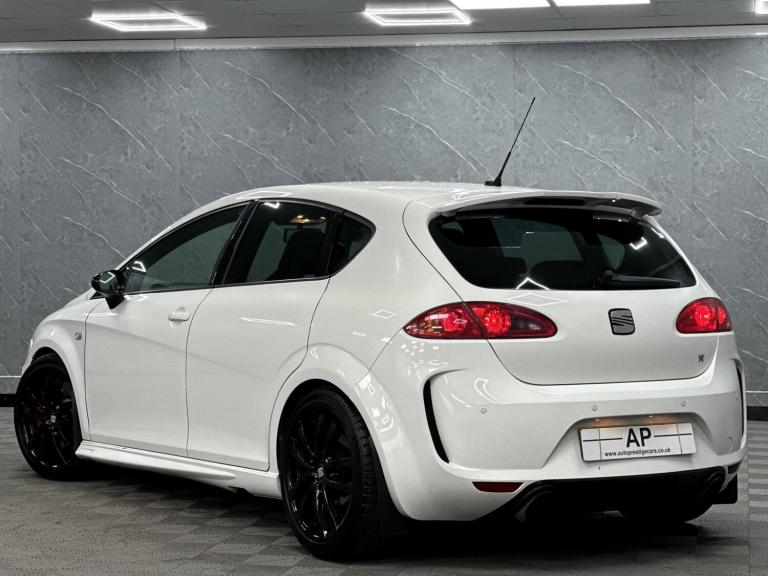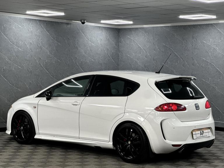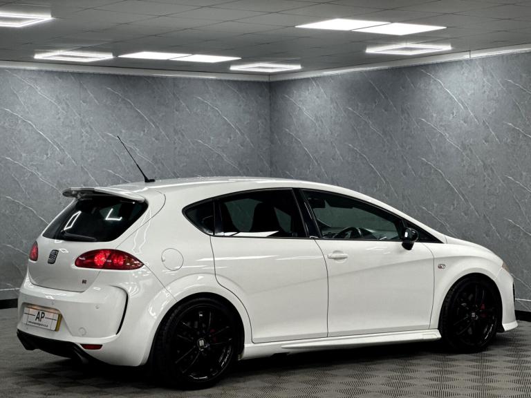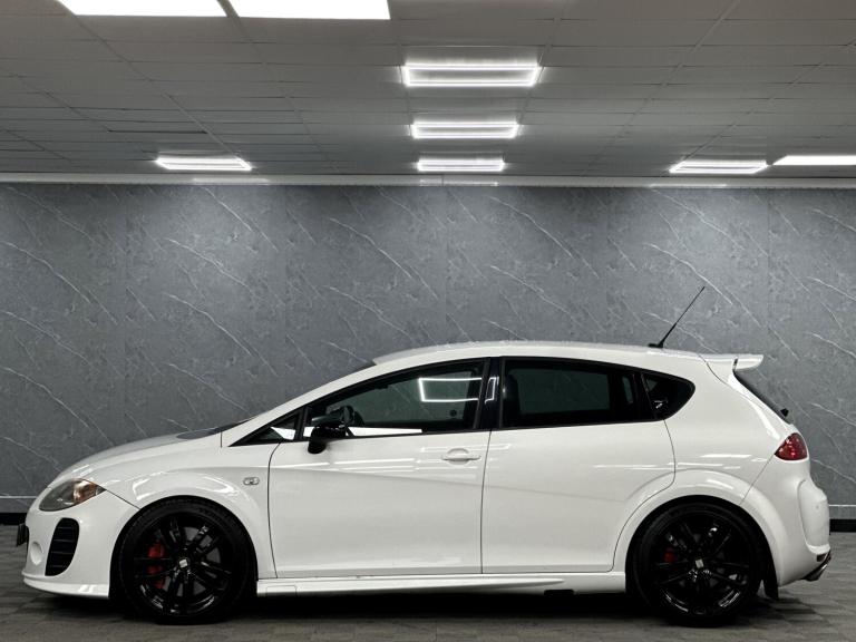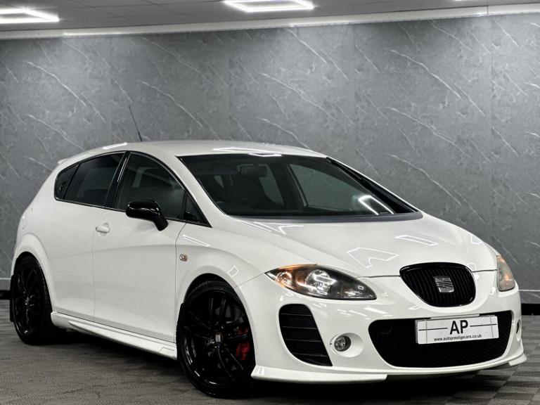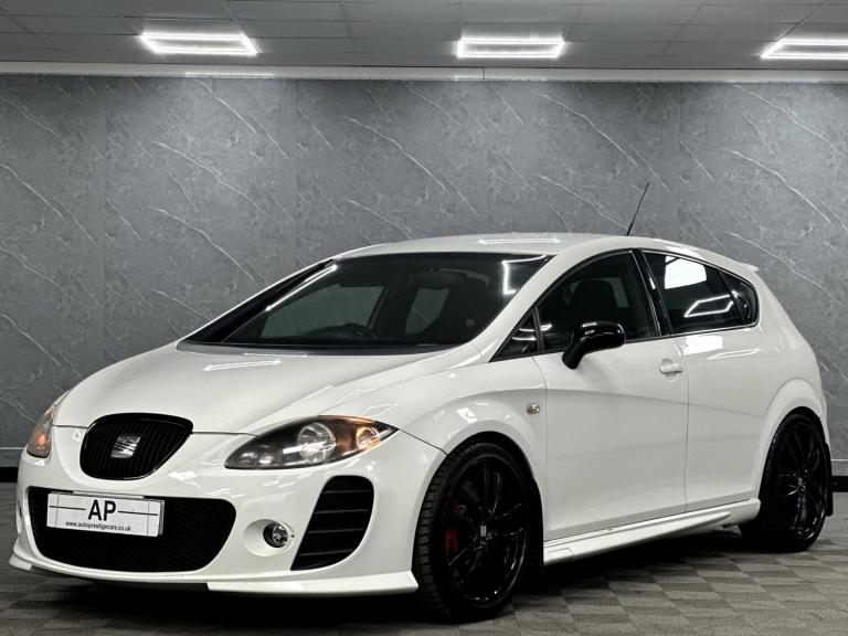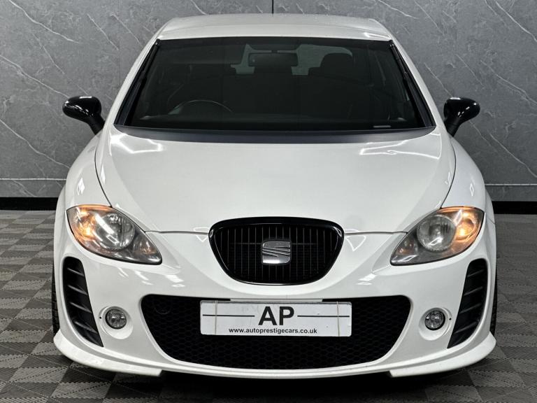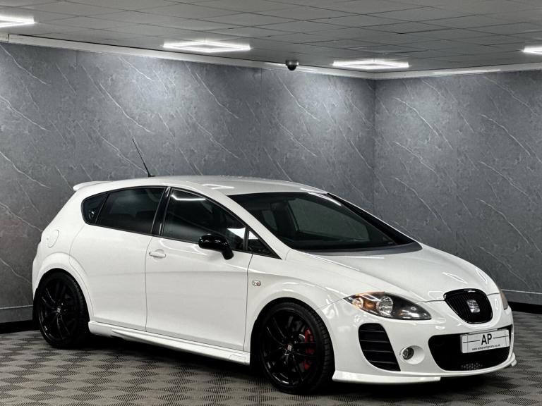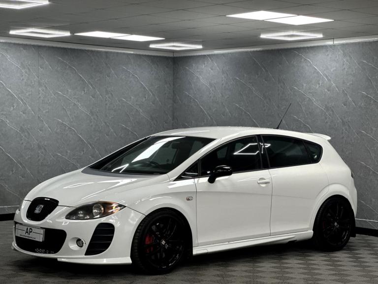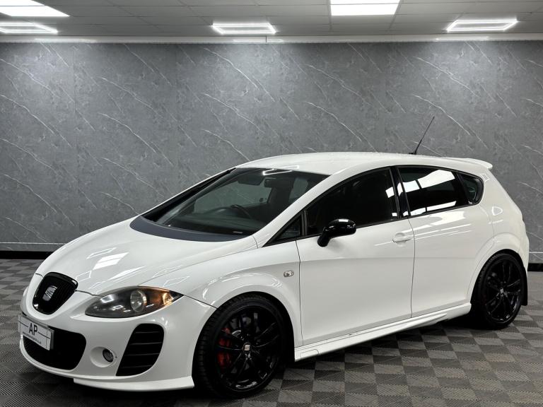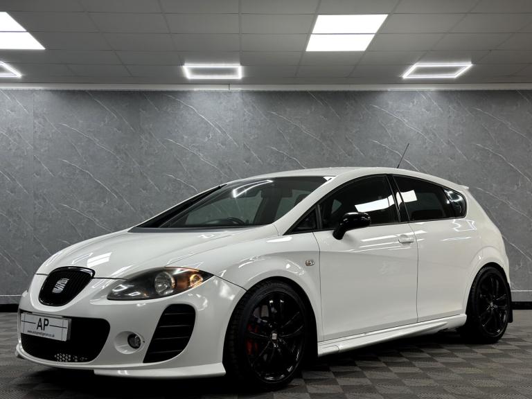 PRESENTING THIS WONDERFUL 2008 SEAT CUPRA RUNNING A STAGE 1 REMAP WITH A RAM AIR INTAKE WHICH SOUNDS AMAZING...BLACK EDITION PACKAGE WITH BLACK GRILL MIRRORS AND BADGES...LOWERED...PRESENTED IN RARE ORYX FACTORY PEARL WHITE OVER BLACK CLOTH BUCKET SEATS WITH THE RARE ARMREST...LOVELY CAR... FULL SERVICE HISTORY - RECENT CAMBELT AND WATERPUMP CHANGE .. DISCS AND PADS REPLACED...GLOSS BLACK POWDER COATED ALLOYS WITH MICHELIN TYRES ALL ROUND....FULL SPECIFICATION INCLUDES FULL BTCC TOURING CAR CHAMPIONSHIP BODY KIT WITH FLARED FRONT AND REAR BUMPERS, SIDE SKIRTS AND BOOT SPOILER, HONEYCOMBE GRILL.....AUTO LIGHTS, PARKING SENSORS, CRUISE CONTROL, SPORT SEATS, TOUCH SCREEN SATELLITE NAVIGATION WITH AUDIO STREAMING, AUX, USB, PRIVACY GLASS AND MUCH MORE...GREAT CONDITION..TWO KEYS...SUPPLIED WITH ALL SUPPORTING PAPERWORK