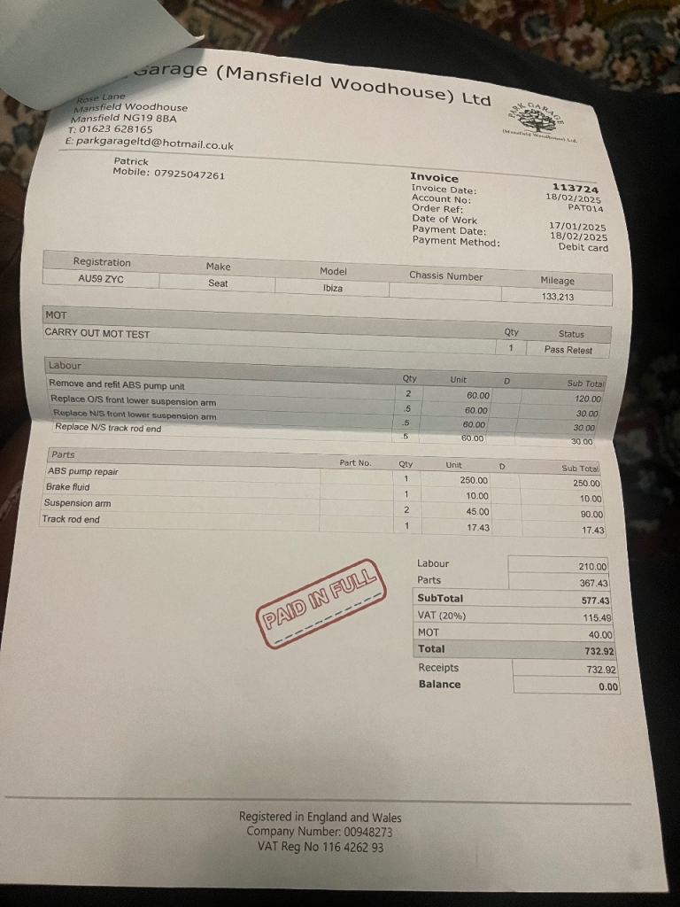 Loads of service history.reciepts.