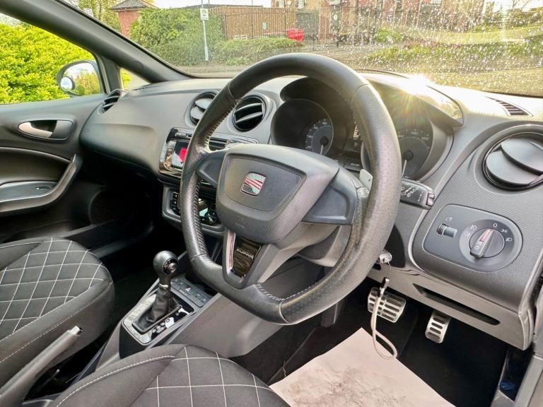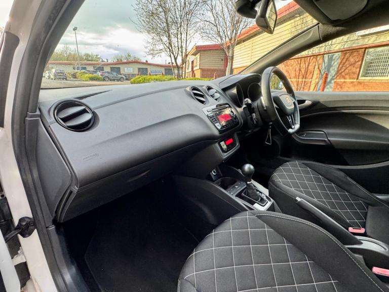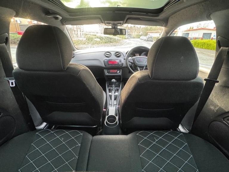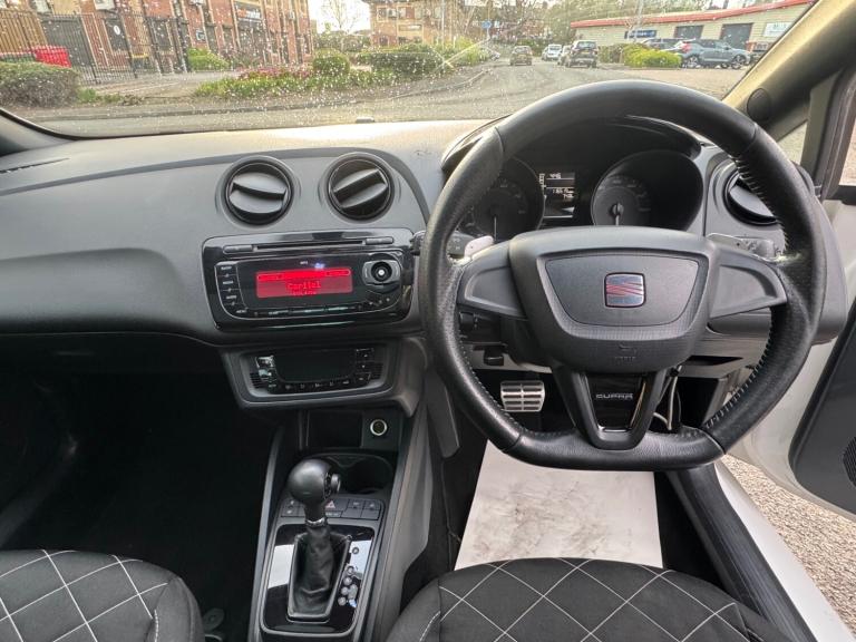 Seat Ibiza 1.4 TFSI DSG Auto - Has covered 116k with service history Good spec - Part Exchange Welcome Features Include: Panoramic Sunroof TILT/SLIDE, 12 volt power supply in centre console, anti-theft roof antenna, bluetooth communications pack and combined usb-aux in port, fm-am radio, four speakers, mp3 compatible cd player, 17in alloy wheels - sira, dark tinted rear windows, door mirrors - heated, electric windows - front with one-touch and anti-squeeze, electrically adjustable door mirrors, electrically folding and heated door mirrors, exclusive styling details, locking wheel bolts, seat logo tailgate release, space-saving spare wheel, tinted windows, air conditioning, black roof lining, climate control with refrigerated glovebox, cupholders - x3, dust and pollen filter, height and reach adjustable steering wheel, height-adjustable drivers seat, illuminated glovebox, leather gear knob, leather steering wheel, seats - sports exclusive, split folding rear seats - 60-40, steering wheel mounted audio and phone controls, steering wheel-mounted gearshift paddles, airbags - driver, airbags - front passenger, airbags - head and thorax, alarm - volumetric, anti-lock braking system - abs, deadlocks, eba - electronic brake assist, electronic stability control - esc, front passenger airbag de-activation, isofix points in rear seats, rear wiper, remote central locking, remote key - folding x2, tcs - traction control system, electro-mechanical power steering - speed-sensitive, gearshift indicator, sports suspension, trip computer, front fog lights, headlights - coming home function