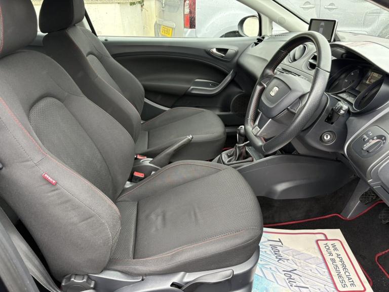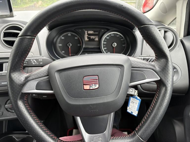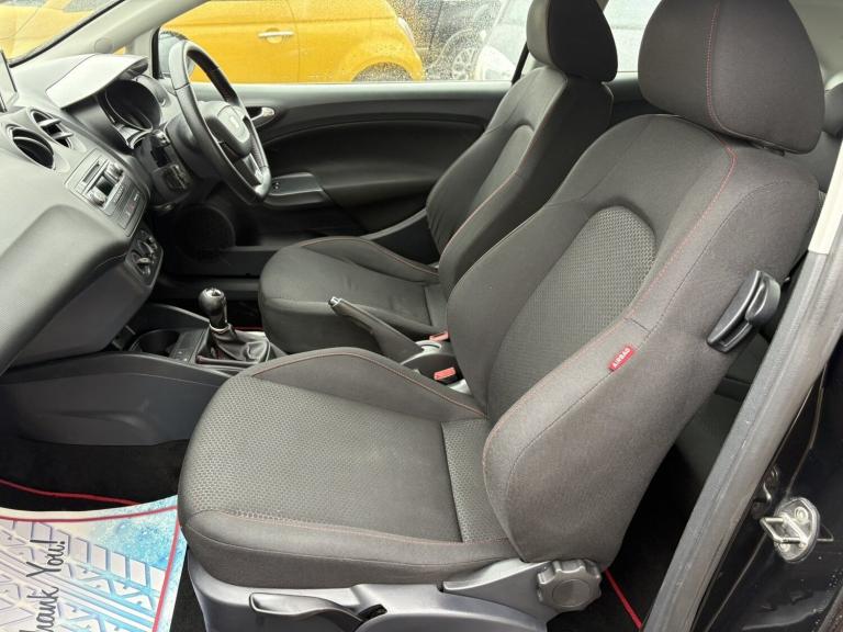 Service History, £35 RFL, 7 Service Stamps in Service Book, 2013 SEAT Ibiza 1.6 TDI CR FR 3dr hatchback with 137000 miles on the clock. This diesel car has an MOT that expires on 26/03/2026 and comes with 5 seats and 3 doors. It has had 2 previous registered keepers and is equipped with features such as a 'Lights On' Reminder warning buzzer, cruise control, digital clock, low fuel warning light, and an outside temperature gauge. This reliable and efficient vehicle is perfect for anyone looking for a spacious and economical car. Don't miss out on this fantastic opportunity to own a quality vehicle. We try to provide as many images and as much information as possible for all our stock but please feel free to contact us if you require further information. We can also offer UK MAINLAND DELIVERY on all of our vehicles, please ask for details, 'Lights On' Reminder warning buzzer Cruise Control Digital clock Low fuel warning light Outside temperature gauge SEAT bluetooth connection with audio streaming Service interval indicator Speed sensitive power steering Trip Computer Diesel particulate filter Sports suspension 4 speakers Auxiliary input socket MP3 compatible radio/single CD player Steering column with mounted audio controls Body colour door handles Body colour door mirrors Body coloured bumpers Coming home headlight function Cornering front fog lights Electric Front Windows Electric headlight adjustment Electrically adjustable and heated door mirrors LED tail lights Rear wiper Roof antenna Twin exhaust pipes 12V accessory power point in centre console 3 cupholders Boot light Driver/passenger sunvisors and vanity mirrors Front door pockets Front seat and rear pockets Grab handles Height adjustable driver's seat Height adjustable front/rear head restraints Height adjustable passenger seat Height/reach adjust steering wheel Illuminated glovebox Interior centre roof light Isofix system on outer rear seats Leather steering wheel and gear knob Map and reading lights Pollen filter Split folding rear seats Sports Seats Underfloor storage compartments in luggage area 3 point seatbelts on all 3 rear seats ABS Driver and passenger airbags ESP+EBA+EDL Front passenger airbag deactivation Front side airbags Seatbelt warning 2 folding remote keys with window open/close function Deadlocks Immobiliser Remote Central Locking Volumetric alarm with back up horn Warranty Sat-Nav