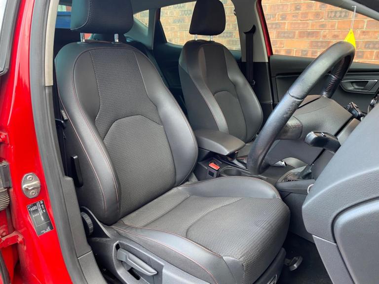 2 KEYS WITH SERVICE HISTORYGEARBOX RECONDITIONED WITH NEW OIL+FILTER, SERVICE INTERVALS AT 8K, 15K, 21K, 26K, 31K, 58K, 82KGEARBOX RECON,RECEIPTS TO PROVE GEARBOX REPAIR AND WARRANTY WITH GEARBOXThis 2013 SEAT Leon TSI FR offers an exhilarating driving experience, boasting a swift 0-62mph acceleration time of just 7.2 seconds. Under the bonnet, you'll find a responsive 1.8 litre petrol engine, compliant with Euro 6 emissions standards. This FR trim level comes equipped with practical parking sensors, both front and rear, complete with an optical parking system to aid manoeuvring. Stay comfortable on every journey with dual zone climate control, allowing you to set individual temperatures for both driver and passenger. Connectivity is made simple with integrated Bluetooth, enabling handsfree calls and audio streaming.The generous boot space ensures you have ample room for luggage or shopping, making this Leon a versatile choice for everyday life. The combination of its sporty performance, advanced parking aids, and convenient technology sets this SEAT Leon apart from others in its class, offering a refined and enjoyable drive.