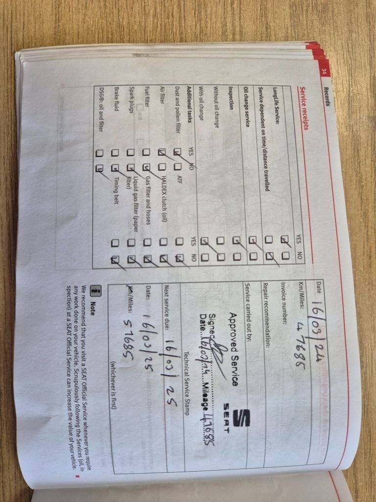WE ARE DELIGHTED TO BE ABLE TO OFFER THIS SEAT LEON FOR SALE. BOTH KEYS AND THE LOCKING WHEEL NUT ARE PRESENT WITH THE CAR AND WE HAVE AN OUTSTANDING SERVICE HISTORY WITH THE CAR WHICH IS DETAILED AS FOLLOWS:- * 8/9/2015 - 3682 MILES - ARNOLD CLARK * 28/9/2016 - 8001 MILES - ARNOLD CLARK * 14/9/2017 - 11097 MILES - ARNOLD CLARK * 20/4/2018 - 19175 MILES - ARNOLD CLARK * 5/4/2019 - 21253 MILES - KWIK FIT * 11/6/2020 - 28102 MILES - KWIK FIT * 12/7/2021 - 33180 MILES - KWIK FIT * 4/7/2022 - 36926 MILES - ARNOLD CLARK * 14/4/2023 - 41050 MILES - SEAT * 16/3/2024 - 47685 MILES - SEAT * 24/2/2025 - 55531 MILES - SEAT * 26/2/2026 - 62274 MILES - SEAT Over 65 similar cars always available at [Website URL removed] System, Integrated Bluetooth Handsfree System, Air Conditioning, Cruise Control, USB Port, Navigation System, Voice Control - In Car Entertaintment, USB Port, Seats - Split Folding Rear, Remote Central Locking, MP3 Compatible CD Player, Integrated Bluetooth Handsfree System, ISOFIX Points with Top Tether on Rear Seats, Front Fog Lights with Cornering Function, FM-AM Radio, Electrically Adjustable and Heated Door Mirrors, Electric Windows - Front and Rear with One-Touch and Anti-Squeeze, Daytime Running Lights - Halogen, Cruise Control, Bluetooth Audio Streaming, Alarm - Perimeter Tow Away Protection, Air Conditioning, AUX-In Port