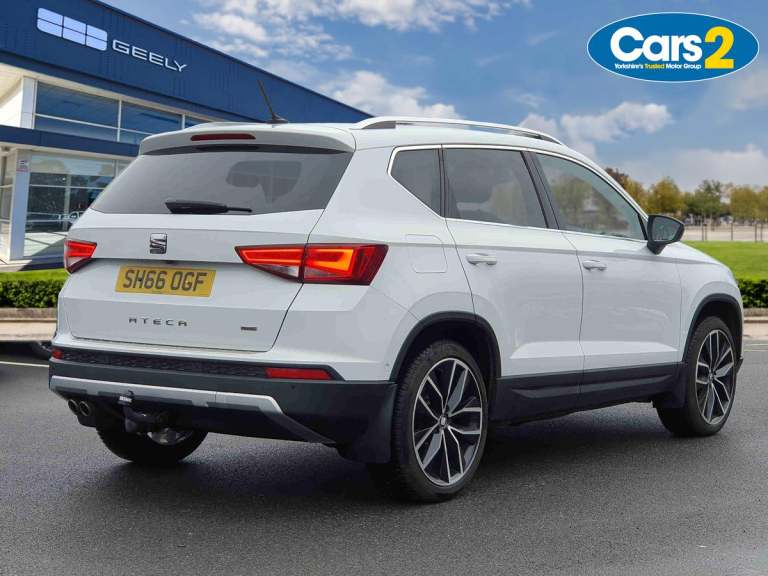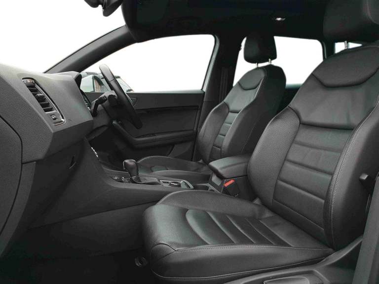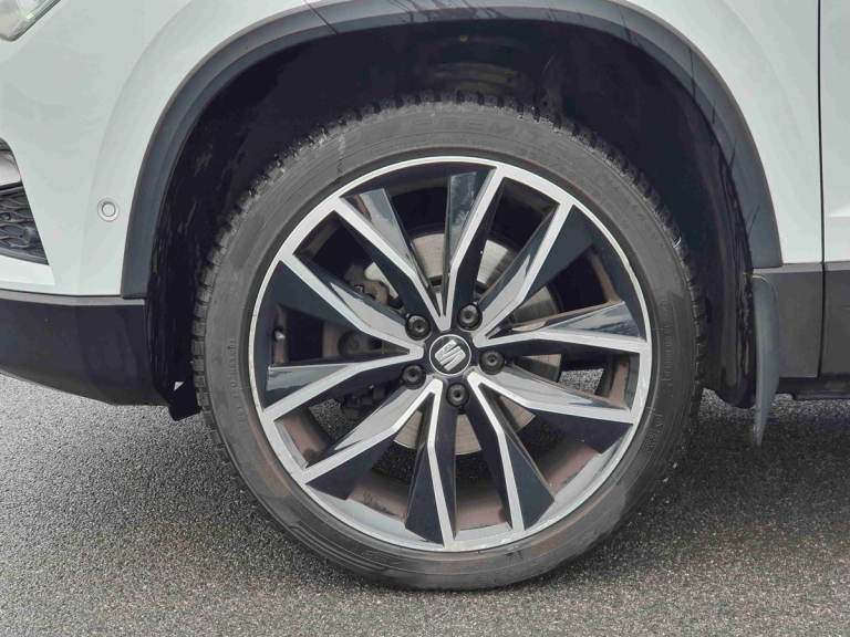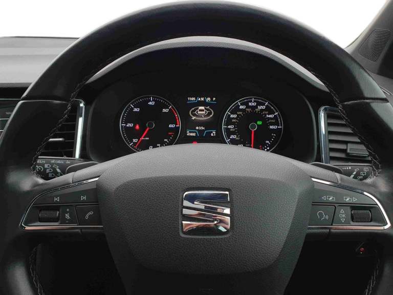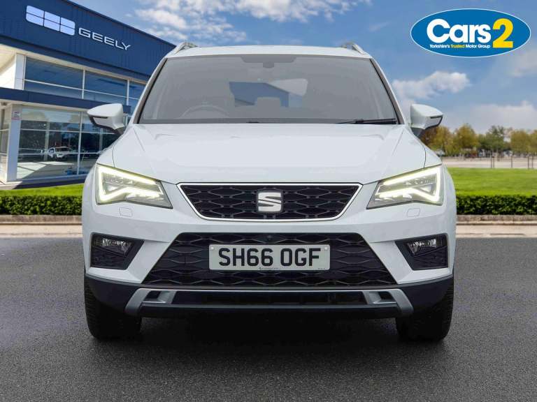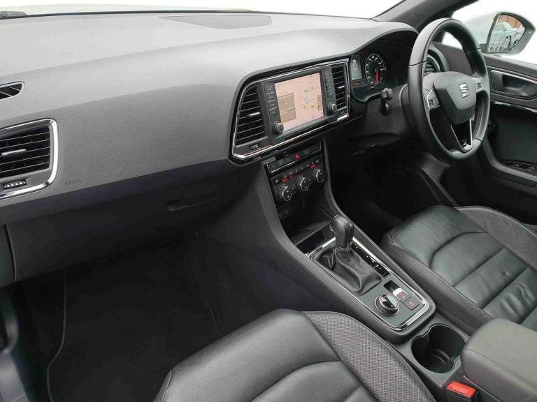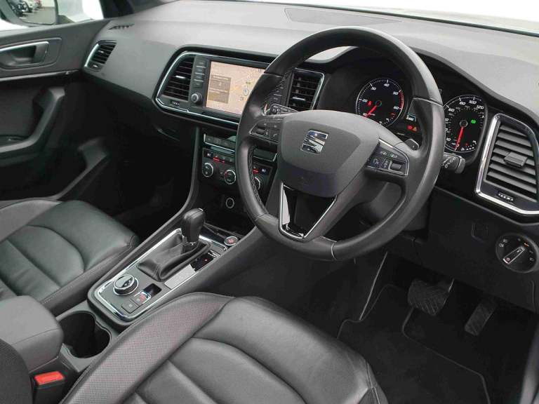 ..'Lights On' Reminder warning buzzer, Driver alert system, Full Link App interface, Low fuel warning light, Multi function display, Outside temperature gauge, Rear parking sensor, Rear view camera, Remote fuel flap release, SEAT Drive profile, SEAT logo boot release, Trip computer, Comfort suspension, XDS electronic differential lock, Steering wheel mounted audio/phone controls, Aluminium front door sills, Aluminium roof rails, Body colour bumpers, Body colour door handles, Body colour door mirrors, Chrome side window trim, Chromed centre radiator grille surround, Cornering front fog lights, Dark tinted rear windows, Electric folding door mirrors, Electrically adjustable and heated door mirrors, Front and rear electric windows, LED daytime running lights, LED Headlights, LED tail lights, Rear wash/wipe, Twin chromed exhaust pipes, Welcome lighting, 12V power point front, 3 height adjustable rear headrests, 60/40 split folding rear seat, Adjustable front armrest with storage compartment, Driver/passenger lumbar adjustment, Driver/passenger sunvisors with illuminated vanity mirrors, Dual zone climate control, Footwell illumination, Front cupholders x 2, Front reading lights, Front seat back storage pockets, Height adjustable front headrests, Height adjustable passenger seat, Illuminated boot, Illuminated glovebox, Isofix child seat preparation, Leather steering wheel and gear knob, Leather upholstery, Rear armrest, Rear central air outlet, Rear reading lights, Roof mounted sunglasses holder, Steering wheel gearshift paddles, Convenience pack - Ateca, Seat Media System Plus pack - Ateca, Winter Pack - Ateca, 3x3 point rear seatbelts, ABS, Auto hold function, Automatic post collision braking, Curtain airbags, Driver/Front Passenger airbags, Drivers knee airbag, Electronic parking brake, Electronic stability control, ESP+EBA, Front and rear seatbelt reminder, Front assist including city emergency braking, Front passenger airbag deactivation, Front side airbags, Hill hold control, Predictive pedestrian protection, Tiredness recognition system, Traction control, Tyre pressure monitoring system, Immobiliser, Locking wheel bolts, Remote central locking, Volumetric alarm with back up horn, Chrome effect dashboard facia
