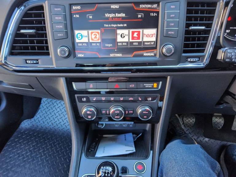 One touch central locking - keyless entry - 2 keys - electric windows/mirrors - heated front and rear windscreens - heated front leather seats - climate control - power steering - cruise control - sat nav - android/carplay- Bluetooth- USB/aux ports - parking sensors - rear view camera - no hands electric tailgate - boot liner - spare wheel/toolkit - car mats - full service history - new cambelt fitted by Seat dealer - MOT until October (nothing needs attention) - 4 new tyres - Euro 6 compliant - really well looked after in the 6 years we've had it - in super condition throughout and finished in metallic Lava Blue