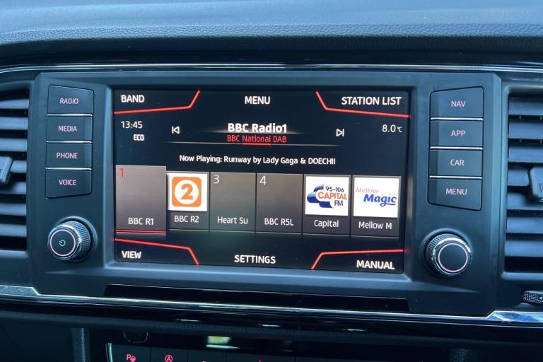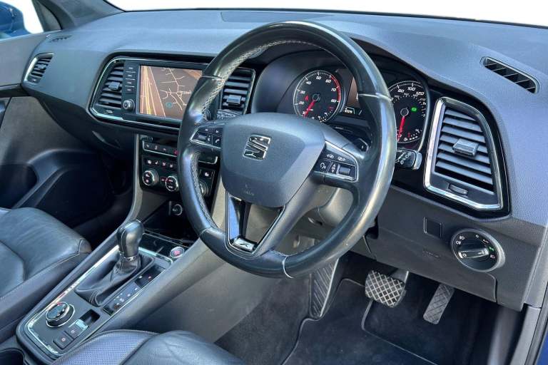 ..Park Assist, Space-Saving Spare Wheel, 12V Socket in Front, 18in Alloy Wheels - Performance, 3.5in Drivers Display, Active Front Head Restraints, Advanced Multi Colour Interior Ambient Lighting and LED Interior Illumination, Alarm - Perimeter and Interior Monitoring, Aluminium Door Step in Front Doors, Aluminium Roof Rails, Ambient Spot Lighting and Front Footwell Illumination, Anti-Lock Braking System - ABS, Armrest with Air Outlet in Rear, Black Interior Roof, Chrome Dashboard Detailing, Chrome Double Exhaust Pipe, Comfort Suspension, Convenience Pack, Cruise Control, Dark Tinted Rear Windows, Digital Clock, Door Mirrors and Door Handles in Body Colour, Door Mirrors with Welcome Light Silhouette, Driver and Front Passenger Airbags, Driver and Passenger Seat with Lumbar Adjustment, Driver and Passenger Sunvisor with Card Holder for Driver, Driver and Passenger Sunvisor with Covered and Illuminated Mirrors, Drivers Knee Airbag, Drivers Seat Lumbar Adjustment, Dual Zone Climate Control, Electric Parking Brake, Electrically Folding Door Mirrors, Electronic Differential Lock System - XDS, Electronic Stability Control - ESC, Four Cargo Rings in the Boot, Front Armrest - Adjustable with Storage Compartment, Front Assist - City Emergency Braking and Pedestrian Protection, Front Courtesy Light with Front and Rear Reading Lights, Front Cup Holders, Front Fog Lights with Cornering Function, Front Grille Frame - Chrome, Front Passenger Airbag De-Activation, Front Seat Back Storage Pockets, Front Side Airbags, Front and Rear Electric Windows, Front and Rear Seatbelt Reminder, Fuel Filler Flap linked to Central Locking, Full LED Headlights, Full Link, Gear Recommendation Indicator, Height Adjustable Front Headrests, Height Adjustable Passenger Seat, Height-Adjustable Drivers Seat, Hill Hold Control, ISOFIX Points in Outer Rear Seats with Top Tether Anchorage Points, Illuminated Boot, Illuminated Glovebox, Instrument Lighting with Brightness Control, KESSY - Keyless Entry and Go, LED Daytime Running Lights, LED Taillights, Leather Gear Knob, Leather Steering Wheel, Lights Left On Warning Buzzer, Locking Wheel Bolts, Low Fuel Warning Light, Media System Plus, Navigation System, Outside Temperature Gauge, Power Steering - Electrically Assisted, RPM Counter, Rear Armrest and Easy Back Seat Release Mechanism From Boot, Rear Fog Light, Rear Parking Sensors, Rear Reading Lights, Rear View Camera, Rear Wash - Wipe, SEAT Drive Profile with Driving Experience Button, SEAT
