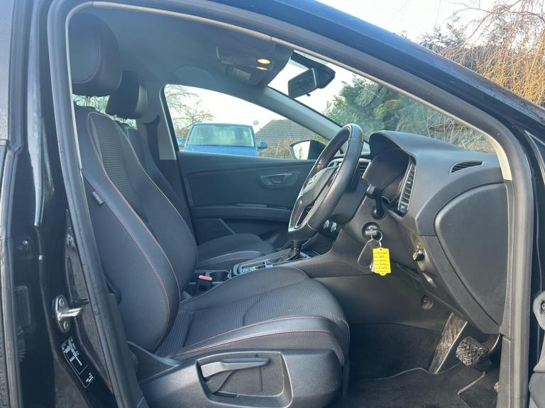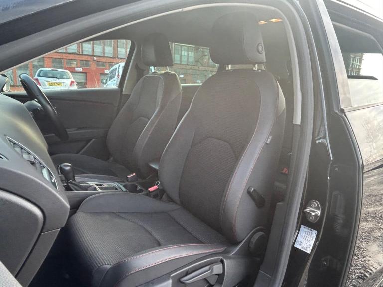 1 Previous Owner, Service History, Service Intervals; 15k, 43k, 49k, 57k, 70k, 82k, 90k, Timing Belt Done @ 70k, Daytime Running Lights, Multifunctional Steering Wheel, Parking Sensors, Full Electric Windows, Electric Folding Side Mirrors, Heated Side Mirrors, Central Locking, Front & Rear Fog Lights, Electric Handbrake, Auto Hold, Cup Holders, Driving Modes; Eco, Sport, Dual Climate Control, AC, Auto Stop/Stop System, On Board Touch Screen, Bluetooth, Android Auto/Apple CarPlay, DAB Radio, Cruise Control, Paddle Shifters, 2x Keys.This 2017 SEAT Leon EcoTSI FR Technology is a superb example with a clear vehicle history check and only two previous owners. It boasts a responsive 1.4 litre petrol engine, meeting Euro 6 emissions standards, and comes equipped with the desirable FR Technology trim. Inside, you'll find the convenience of Full Link, offering seamless integration with Android Auto and Apple CarPlay, alongside a Media System Plus with Bluetooth connectivity. Enjoy personalised comfort with Dual Zone Climate Control and navigate with ease thanks to the integrated Navigation System, also featuring Bluetooth. Parking is made simpler with rear parking sensors.This SEAT Leon stands out with its impressive fuel economy, achieving a remarkable 57 miles per gallon, and its low CO2 emissions. The acceleration is also noteworthy, reaching 0 to 62 miles per hour in just 8.2 seconds, demonstrating a strong balance between performance and efficiency. Furthermore, you'll appreciate the generous boot space, making it a practical choice for everyday use and longer journeys, offering more versatility than many comparable vehicles.
