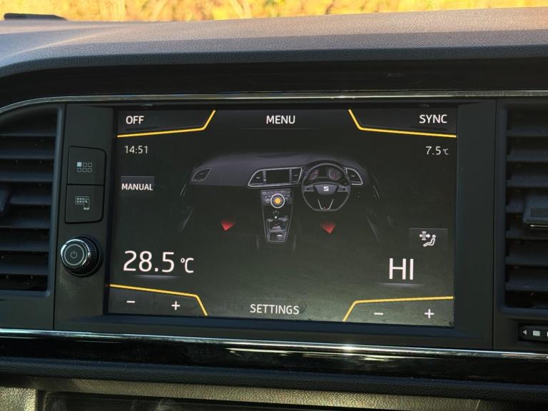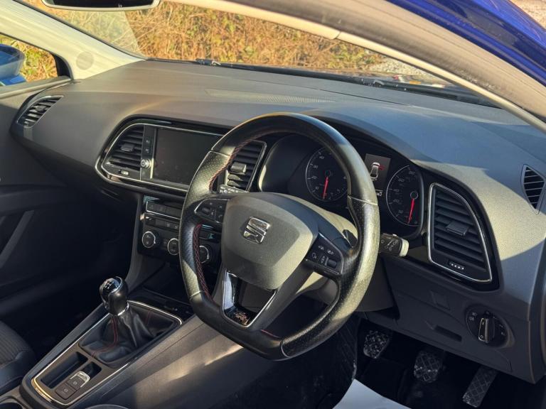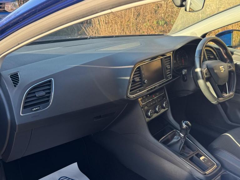 FULL SERVICE HISTORY - 9 SERVICES - 1 MAIN DEALER SERVICE - SERVICE INTERVALS @ 10K, 19K, 29K, 39K, 48K, 57K, 69K, 95K 98K, - MOST RECENT SERVICE DONE @ 98,336KLOGBOOKEquipment:Navigation SD CardNavigation SystemParking Sensor(s)Climate ControlHalf Leather Trim18'' Alloy WheelsPrivacy GlassThis 2017 SEAT Leon TSI FR Technology is a great example of a well maintained vehicle. Under the bonnet, you'll find a 1.4 litre petrol engine, compliant with Euro 6 emissions standards. This FR Technology model comes equipped with a comprehensive navigation system featuring Bluetooth connectivity, and a Media System Plus, also with Bluetooth. For convenience, it includes rear parking sensors with parking assistance, and the Full Link system which supports both Android Auto and Apple CarPlay. Comfort is assured with dual zone climate control, allowing you to set individual temperatures.This SEAT Leon offers several advantages over other cars in its class. Its impressive fuel economy of 54 miles per gallon means fewer trips to the petrol station. You'll also benefit from a low insurance group, making ownership more affordable. The generous boot space provides ample room for shopping or luggage, and its low CO2 emissions are better for the environment.