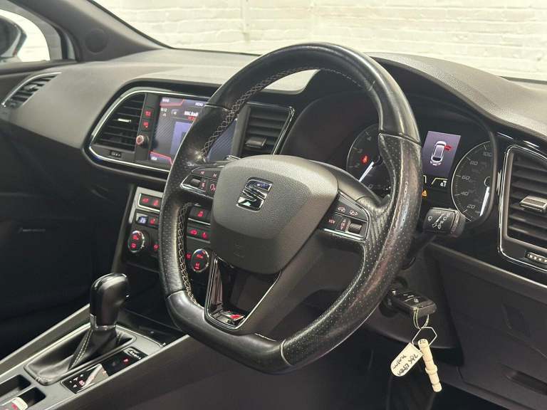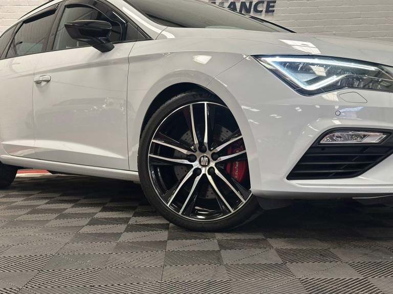 2018 67 SEAT LEON 2.0 TSI CUPRA 300 ESTATE 5DR DSG AUTO.^^This Vehicle Comes With Warranty As Standard, Please Call Us For More Details!^^Stunning Example Presented In Seat Pure White Paintwork With Contrasting Black Carbon Leather Seats Complete With 19 Inch Gloss Black Alloy Wheels With A Diamond Cut Finish.^^Covering 63,000 Miles From New, Backed Up With Full Service History Which Is Up Date In The Vehicles Service Book. Very Clean Throughout With Excellent Bodywork, Unmarked Interior And Outstanding Wheels, New Owner Won’t Be Disappointed. This Vehicle Comes With Two Keys.^^Its 2.0 Litre Turbo Petrol Engine Produces 296Bhp And 380Nm Of Torque . This Is Matched With Its 6 Speed Automatic Gearbox With The Option Of Changing Gear With F1 Style Paddle Shifters Which Makes For A Superb Drive.^^Outstanding Spec Includes;^*Seat Pure White Paintwork.^*Black Carbon Heated Leather Seats. (Drivers Electric Adjustable)^*19 Inch Gloss Black Alloy Wheels With A Diamond Cut Finish.^*Seat Drive Modes With DCC. (Comfort, Sport, Cupra, Individual)^*Multi Function Steering Wheel.^*Cruise Control System.^*Digital Dual Climate Control.^*Electronic Folding Wing Mirrors.^*Heated Wing Mirrors.^*Parking Sensors.^*Automatic Xenon Headlights.^*Automatic Windscreen Wipers.^*Upgraded Seat Sound.^*Seat Touch Multi Media Interface.^*Full Link Including Apple Car Play.^*DAB Radio.^*Bluetooth Connectivity.^*USB Input.^*AUX Input.^*Wireless Charging.^*Ambient Interior Lighting.^*Electronic Parking Brake.^*Auto Hold.^*Racing Line R600 Intake.^*Split Folding Rear Seats.^^Excellent Standard Spec Includes; Height Adjustable Steering Wheel, Cup Holders, Traction Control, Arm Rest, Auto Dimming Rear View Mirror, 12V And Much More.^^All Our Vehicles Have Been Road Tested With Multi Point Checks And We Welcome RAC Or AA Inspections, For Your Added Peace Of Mind All Of Our Vehicles Are HPI Clear.^^We Can Provide A Decision Within 30 Minutes Please Call Us To Discuss Your Requirements, Our Finance Partners Include Close Brothers | CF247 | Motonovo | Evolution And Others.^^We Offer Full Dealer Facilities Including A Comfortable Customer Office An Indoor Viewing Area And We Accept All Methods Of Payment, We Are Open 7 Days A Week Please Call Ahead To Ensure The Vehicle Of Interest Is Still Available, Sales 0161 336 2007 Or General Enquiries 0161 335 0008.^^Every effort has been made to ensure the vehicle has been described accurately in accordance with its age and mileage, The data above details the usual specification of the most recent model of this vehicle and may vary for the actual vehicle for sale.^^Please always check the vehicle specification prior to purchase. If You Have Any Questions Please Get In Touch And We Will Be Happy To Help.^^All Our Vehicles Come With Warranty Included, Extended Warranty Options Available, We Offer Finance With Competitive HP And PCP Deals Available, Visit Our Website To Use Our Online Calculator And Apply Online Today! / Call us :