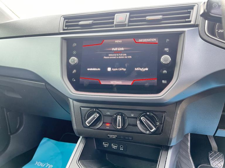 This 2018 SEAT Arona 1.6 TDI SE Technology SUV is a top-tier vehicle, with 90484 miles on the clock and a diesel engine, it's perfect for long journeys and everyday use. There's plenty of peace of mind to be had. The spacious interior comfortably seats 5 and with 5 doors, getting in and out is a breeze. As a bonus, this SUV is ULEZ compliant, providing environmentally-friendly driving in urban areas. The sleek design features 17in Alloy Wheels, a Bi-Colour Roof, Black Window Trim, and Body-Coloured Door Handles. Inside, riders can enjoy Electric Windows - Front and Rear with One-Touch and Anti-Squeeze, making the drive as convenient and enjoyable as possible. Overall, this SEAT Arona SUV is a reliable and stylish choice for any driver. - Service history - Part Exchange Welcome - Extended Warranties Available - Finance Available TAG 96 Features Include: , 17in alloy wheels - dynamic, bi-colour roof, black window trim, body-coloured door handles, electric windows - front and rear with one-touch and anti-squeeze, electrically adjustable door mirrors, emergency tyre repair kit, front grille frame in chrome, hidden exhaust pipe, locking wheel bolts, roof rails - black, active front head restraints, air conditioning, dimming interior rear view mirror, double boot floor, driver sunvisor with mirror and card holder, dust and pollen filter, front courtesy light with front and rear reading lights, height adjustable drivers seat, height adjustable front passenger seat, height and reach adjustable steering wheel, illuminated boot, instrument lighting with brightness control, interior ambient light, interior chrome pack, interior footwell light, leather handbrake, leather steering wheel and gear knob, passenger sunvisor with mirror and card holder, rear fog light, split folding rear seats - 60-40, two cup holders in cabin, two front and three rear height-adjustable headrests, usb media cable, windshield wiper with intermittent control and potentiometer - four speeds, anti-lock braking system - abs, automatic warning lights, child locks on rear doors, driver and front passenger airbags, esc - electronic stability control with eba - emergency brake assist, electronic engine immobiliser, front assist, front passenger airbag de-activation, front side and curtain airbags, front and rear seatbelt reminder, hill hold control, isofix points in outer rear seats with top tether anchorage points, led licence plate lighting, multi-collision braking system, rear window