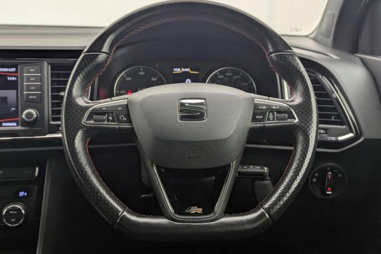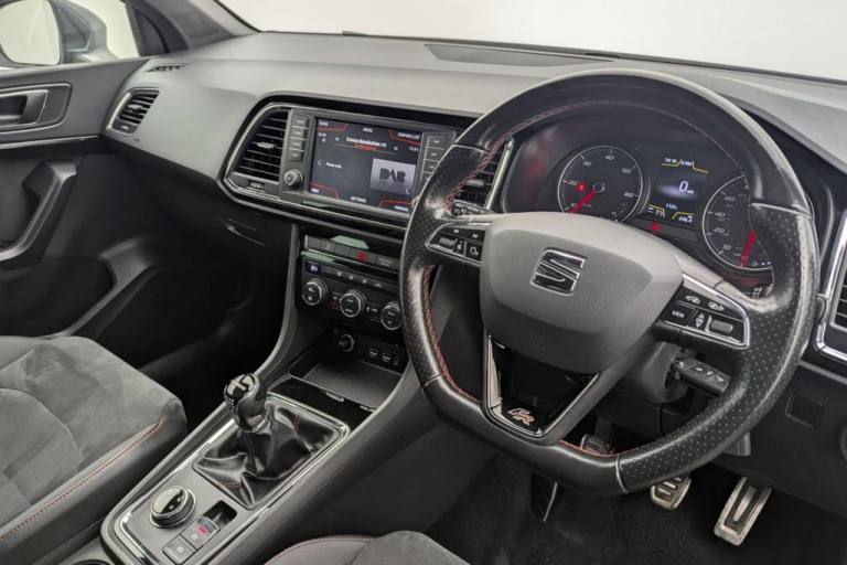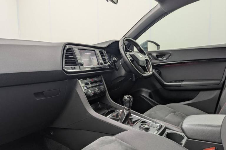 The 2018 SEAT Ateca 2.0 TDI FR is a stylish and versatile compact SUV designed for drivers seeking a blend of practicality, performance, and sporty appeal. Powered by a robust 2.0-liter TDI diesel engine producing 150 PS, this SUV delivers an excellent balance of power and efficiency. Equipped with a 6-speed manual transmission and SEATs 4Drive all-wheel-drive system, it offers confident handling and stability on any terrain. The FR trim emphasizes a sporty aesthetic with sharp design elements, including bold LED headlights, a gloss black grille, dynamic body styling, and striking 18-inch alloy wheels. Its compact SUV proportions ensure easy maneuverability while providing a commanding road presence. Inside, the FR trim features a driver-focused cabin with premium materials and sporty accents. Supportive FR sports seats, a leather-wrapped steering wheel, and red contrast stitching elevate the interiors appeal. Practicality is key, with a spacious 5-door layout, ample boot space, and flexible seating for family or adventure needs. Technology is at the forefront, with a touchscreen infotainment system that includes satellite navigation, DAB radio, Bluetooth connectivity, and smartphone integration via Apple CarPlay and Android Auto. The Ateca is also equipped with advanced safety features such as adaptive cruise control, parking sensors, lane assist, and emergency braking. Adhering to Euro 6 emissions standards and featuring a start/stop (s/s) system for improved fuel efficiency, the 2018 SEAT Ateca 2.0 TDI FR 4Drive is a practical yet sporty SUV ready for any journey..Cruise Control, Reversign Camera, Automatic headlight / rain sensing wiper, Front and rear park sensors, Aircon, 12V Socket in Front, 18in Alloy Wheels - Performance 36-3, 3.5in Drivers Display, Active Front Head Restraints, Advanced Multi-Colour Interior Ambient Lighting with LED Interior Illumination and LED Illuminated Glovebox, Alarm - Perimeter and Interior Monitoring, Aluminium Door Step in Front Doors, Aluminium Roof Rails, Ambient Spot Lighting and Front Footwell Illumination, Anti-Lock Braking System - ABS, Armrest with Air Outlet in Rear, Automatic Headlight Adjustment, Black Interior Roof, Chrome Dashboard Detailing, Chrome Double Exhaust Pipe, Comfort Suspension, Cruise Control, Dark Tinted Rear Windows, Digital Clock, Door Mirrors and Door Handles in Body Colour, Door Mirrors with Welcome Light Silhouette, Driver and Front Passenger Airbags, Driver and Passenger Seat with Lumbar Adjustment, Driver and Passenger Sunvisor with Card Holder for Driver, Driver and Passenger Sunvisor with Covered and Illuminated Mirrors, Drivers Knee Airbag, Drivers Seat Lumbar Adjustment, Dual Zone Climate Control, Electric Parking Brake Including Autohold Function, Electrically Folding Door Mirrors, Electronic Differential Lock System - XDS, Electronic Stability Control - ESC, Four Cargo Rings in the Boot, Front Armrest - Adjustable with Storage Compartment, Front Assist - City Emergency Braking and Pedestrian Protection, Front Courtesy Light with Front and Rear Reading Lights, Front Cup Holders, Front Grille Frame - Chrome, Front LED Fog Lights with Cornering Function, Front Passenger Airbag De-Activation, Front Seat Back Storage Pockets, Front Side Airbags, Front and Rear Electric Windows, Front and Rear Seatbelt Reminder, Fuel Filler Flap linked to Central Locking, Full LED Headlights, Full Link, Gear Recommendation Indicator, Height Adjustable Front Headrests, Height Adjustable Passenger Seat, Height-Adjustable Drivers Seat, High Gloss Black Grille, Hill Hold Control, ISOFIX Points in Outer Rear Seats with Top Tether Anchorage Points, Illuminated Boot, Instrument Lighting with Brightness Control, LED Daytime Running Lights, LED Taillights, Leather Gear Knob, Leather Steering Wheel, Lights Left On Warning Buzzer, Locking Wheel Bolts, Low Fuel Warning Light, Media System Plus, Navigation System, Outside Temperature Gauge, Pedals in Aluminium, Power Locking and Remote Control with Two Foldable Keys and Opening Boot Selector - 3 Buttons, Progressive Steering, RPM