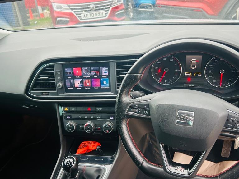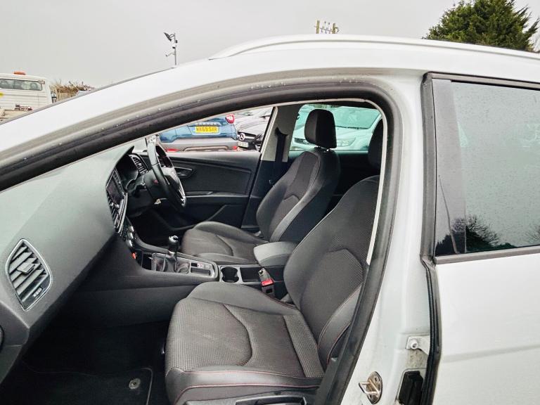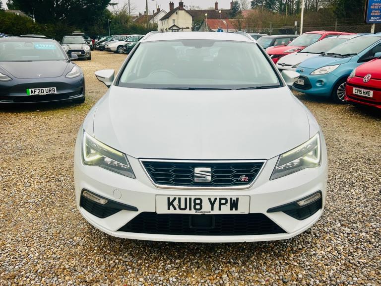 2018 Seat Leon FR Estate Euro 6 - Has covered 117k with great history - Will be supplied with 12 months Mot - Ulez compliant - Finance Available - Part Exchange Welcome Features Include: , 12v power supply in centre console, media system plus, navigation system, seat full link smartphone integration - mirror link - apple carplay - google android auto, 17in alloy wheels - dynamic 30-2, body-coloured door handles, body-coloured door mirrors with integrated led indicators, bumpers - exclusive fr front and rear, dark tinted rear windows, electrically folding door mirrors, emergency tyre repair kit, front and rear electric windows, high gloss black b and c pillars, illuminated door sill plates, radiator grille frame in chrome, radiator grille in black, visual twin exhaust pipes, 2 boot storage net - left and right, active front head restraints and 3 rear head restraints, aluminium front door sill trims with fr logo, chrome loading sill, driver and passenger seat height adjustment, driver and passenger sunvisor with covered and illuminated mirrors, drivers seat lumbar adjustment, dual zone climate control, front seat back storage pockets, front sports seats, fuel filler flap linked to central locking, head restraints - height adjustable front, high centre console, illuminated glovebox, instrument lighting with brightness control, interior chrome detailing, luggage compartment cover, multi coloured ambient lighting, reading lights front and rear with ambient spots - boot lights and illuminated foot area, seats - passenger lumbar adjustment, split folding rear seats - 60-40, steering wheel - flat-bottomed perforated leather with red stitching and fr logo, storage box under drivers seat, 7 airbags, abs - anti-lock braking system - tcs - traction control system, esc - electronic stability control and tyre pressure warning light indicator, electric parking brake including autohold function, front assist with city emergency braking, hill hold control, isofix points in outer rear seats with top tether anchorage points, multi-collision braking system, remote central locking with deadlocks, seatbelt reminder - front, two remote keys with window open-close - door mirror folding and boot opening functionality, cruise control, electro-mechanical power steering, electronic differential lock system - xds, gearshift indicator, low fuel warning light, outside temperature gauge, rpm counter, rear parking sensors, seat drive profile, sports suspension, trip computer,