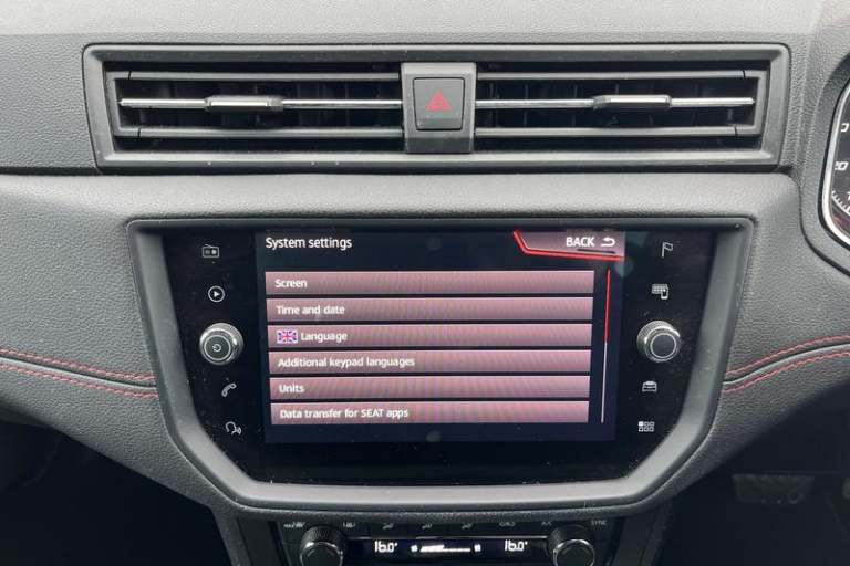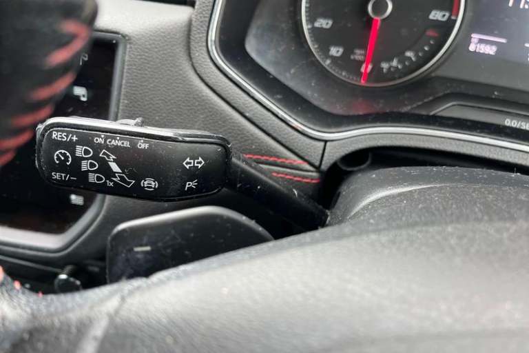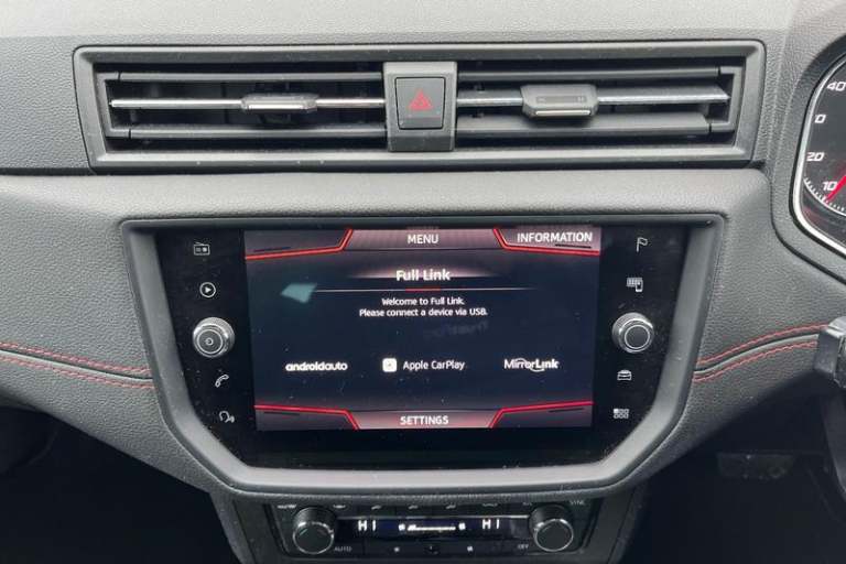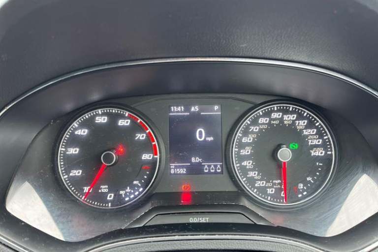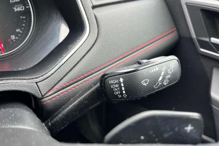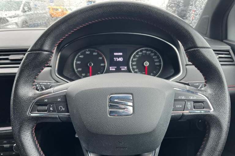 'Lights On' Reminder warning buzzer, Cruise control, Digital clock, Electric speed sensitive power steering, Full Link Smartphone Integration with Mirror Link, Apple Car Play, Google Android Auto with USB Type C cable for Apple and Android compatibility, Low fuel warning light, Outside temperature display, Rear parking sensor, RPM counter, SEAT Drive profile - Four different models normal-sport-eco-individual, steering response, throttle response and gear shifts mode, Trip computer, Anti theft roof antenna, Auto dimming interior rear view mirror, Automatic activation of hazard warning lights, Automatic headlights, Body coloured bumpers, Body coloured door handle inserts, Chrome front grille frame, Chrome roof rails, Chrome window trim, Coming/leaving home lighting function, Dark tinted rear windows, Electric front/rear windows with one touch/auto up/down, Electrically adjustable, heated and folding door mirrors, Full LED headlights dipped and mainbeam + front and rear fog lights, LED daytime running lights, LED rear tail lights and licence plate lights, Rain sensing wipers, Rear window wash/wipe, Roof colour door mirrors, Twin exhaust pipe styling hidden exhaust pipe, Visible VIN plate, Windshield wiper with intermittent control and potentiometer, 2 cupholders, 60/40 split folding rear seat, Black interior roof, Double boot floor, Driver sunvisor with covered mirror + card holder, Dual zone climate control, Dust/pollen filter, Front courtesy light with front reading lights,