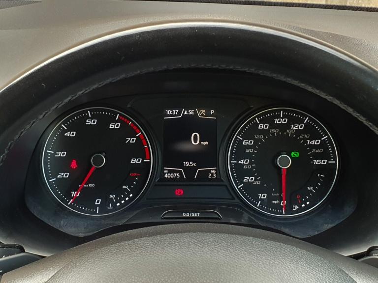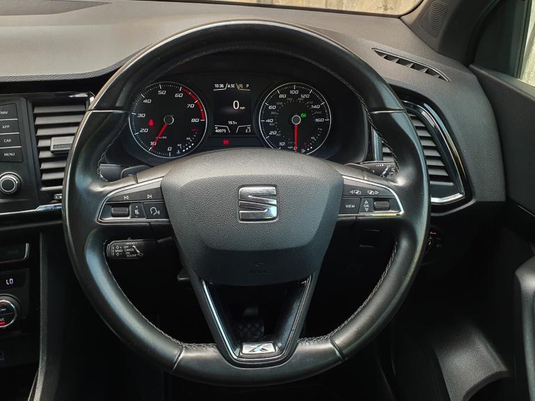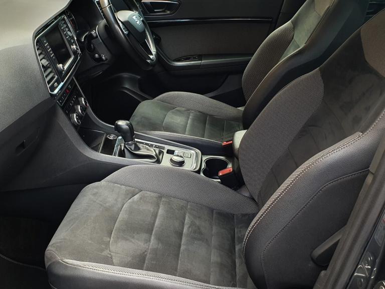 ..'Lights On' Reminder warning buzzer, 3.5'' driver's display, 8.0'' colour touchscreen with proximity sensor, Adaptive cruise control, Digital clock, Driver alert system, Full Link Smartphone Integration with Mirror Link, Apple Car Play, Google Android Auto, Low fuel warning light, Multi function display, Outside temperature gauge, Park assist system with steering assist, Progressive power assisted steering, Rear view camera, Remote fuel flap release, RPM counter, Satellite navigation system, SEAT Drive profile, SEAT logo boot release, Self parking functionality (includes front and rear parking sensors), Trip computer, Wireless Smartphone charger, Comfort suspension, XDS electronic differential lock, SEAT USB media cable, Steering wheel mounted audio/phone controls, Aluminium front door sills, Auto dimming rear view mirror, Automatic headlights, Black wheel arch extensions, Body colour bumpers, Body colour door handles, Body colour door mirrors, Chrome roof rails, Chrome side window trim, Chromed centre radiator grille surround, Dark tinted rear windows, Door mirrors with welcome CUPRA light silhouette, Electric folding door mirrors, Electrically adjustable and heated door mirrors, Front and rear electric windows, Full LED headlights, Heated windscreen, Hidden exhaust pipe, High gloss black grille, LED daytime running lights, LED front fog lights with static cornering light function, LED Headlights, LED tail lights, Rear fog lights, Rear wash/wipe, Twin chromed exhaust pipes, Welcome lighting, 12V power point front, 3 height adjustable rear headrests, 4 Lashing eyes in boot, 60/40 split folding rear seat, Active head restraints, Adjustable front armrest with storage compartment, Advanced multicolour ambient light with LED interior light and LED illuminated glovebox, Alcantara/leather upholstery, Black roof lining, Comfort front seats, Driver sunvisor with covered mirror + card holder, Driver/passenger lumbar adjustment, Driver/passenger sunvisors with illuminated vanity mirrors, Dual zone climate control, Footwell illumination, Front courtesy lights, Front cupholders, Front reading lights, Front seat back storage pockets, Gear shift indicator, Height adjustable driver's seat, Height adjustable front headrests, Height adjustable passenger seat, Illuminated boot, Illuminated door sills, Instrument lighting with brightness control, Isofix child seat preparation, Leather steering wheel and gear knob, Rear armrest, Rear central air outlet, Rear reading