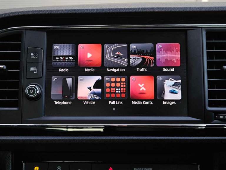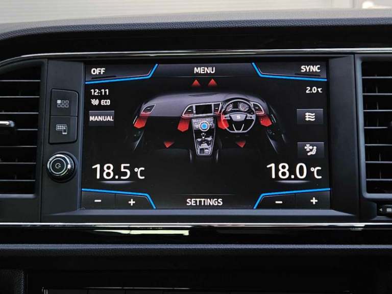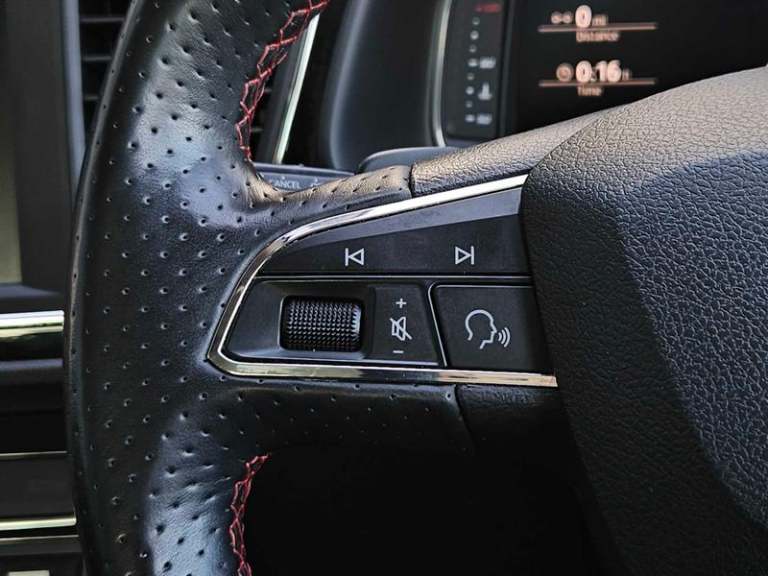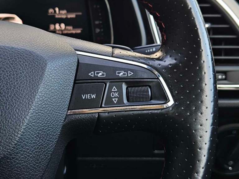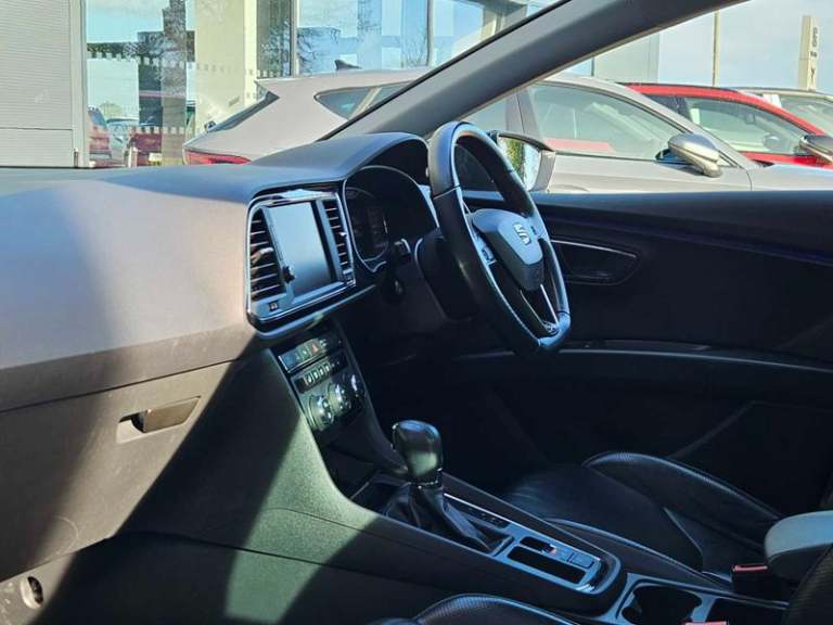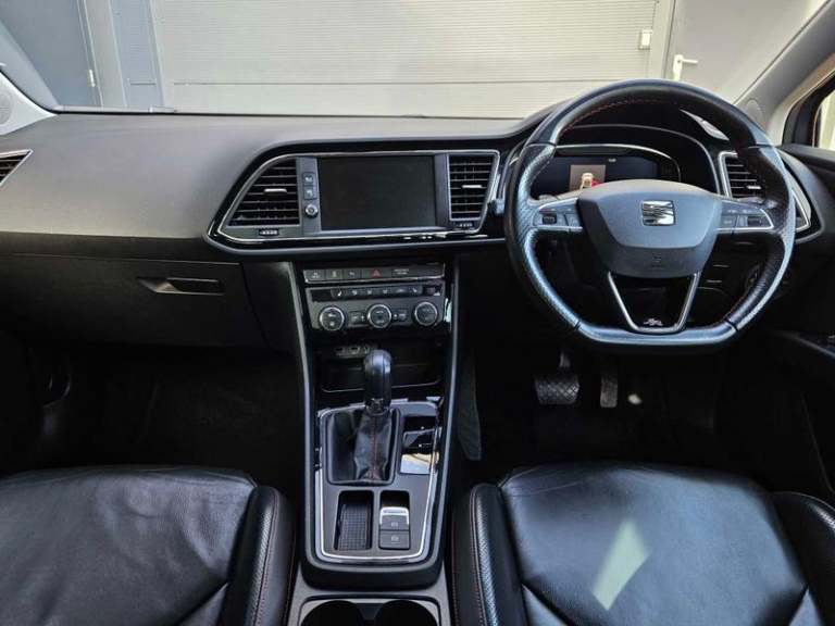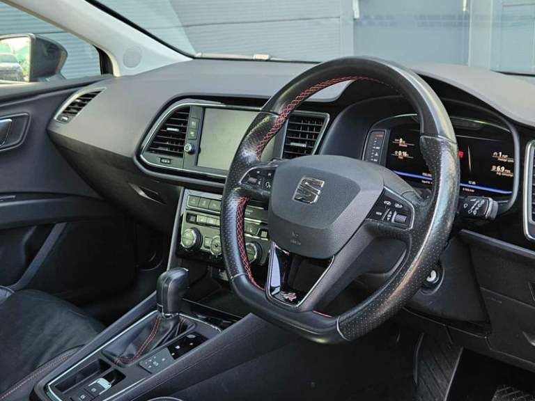 12V Power Supply in Centre Console, Navigation System, SEAT Full Link Smartphone Integration - Mirror Link - Apple CarPlay - Google Android Auto, USB Cable for Apple and Android Compatibility, Cruise Control, Digital Clock, Front and Rear Parking Sensors, Gearshift Indicator, Low Fuel Warning Light, Outside Temperature Gauge, RPM Counter, SEAT Drive Profile, Trip Computer, 18in Alloy Wheels - Performance 30-1, Body-Coloured Door Handles, Body-Coloured Door Mirrors with Integrated LED Indicators, Bumpers - Exclusive FR Front and Rear, Dark Tinted Rear Windows, Electrically Adjustable and Heated Door Mirrors, Electrically Foldable Exterior Mirrors with Parking Position and Passenger-Side Mirror with Lowering, Emergency Tyre Repair Kit, Front and Rear Electric Windows, High Gloss Black B and C Pillars, Radiator Grille Frame in Chrome, Radiator Grille in Black, Visual Twin Exhaust Pipes, Full LED Headlights, Lights Left On Warning Buzzer, Boot Storage Net, Cargo Rings in the Boot, Convenience Pack Plus, Digital Cockpit, Driver and Passenger Seat Height Adjustment, Driver and Passenger Sunvisor with Covered and Illuminated Mirrors, Drivers Seat Lumbar Adjustment, Dual Zone Climate Control, Front Seat Back Storage Pockets, Front Sports Seats, High Centre Console, Illuminated Aluminium Front Door Sill Trims with FR Logo, Instrument Lighting with Brightness Control, Interior Chrome Detailing, Interior FR Black - Black Glossy, LED Interior Illumination Pack, Multi Coloured Ambient Lighting,