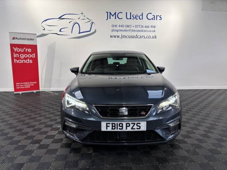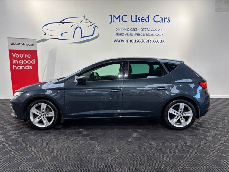 The SEAT Leon 1.5 TSI EVO FR (130 ps) is a really well-balanced car: sporty enough to be fun, but efficient and practical enough to be daily-driver?friendly. If maintained well, its a reliable and economical car to own, especially for someone wanting a "hot hatch-lite" rather than a full-on performance car. Award-Winning Family Business Premium Customer Service & Aftercare Located just off Junction 24 of the M8 in Glasgow, we offer an impressive range of quality used cars, all displayed in our indoor showroom. Each vehicle is meticulously prepared to meet our high standards, ensuring youre driving away with complete confidence. We welcome part exchanges and offer tailored finance and warranty packages to suit every budget. Need help choosing the right car? Our team is here to provide expert advice and support. Cant make it in person? No problem! We offer live video walkarounds of our cars upon request, and you can complete all finance agreements securely online. For more details or to arrange a viewing, contact Martin today. JMC USED CARS WWW.JMCUSEDCARS.CO.UK [Email address removed. Click Email button to contact us.], CRUISE CONTROL, DAB RADIO, PARKING SENSORS, PART LEATHER SEATS, 12V Power Supply in Centre Console, 17in Alloy Wheels - Dynamic 30-2, 7 Airbags, ABS and Traction Control System - TCS - Electronic Stability Control - ESC - and Electronic Differential Lock System - XDS, Alarm - Volumetric, Armrest - Front with Storage Compartment, Body-Coloured Door Mirrors with Integrated LED Indicators, Bumpers - Exclusive FR Front and Rear, Convenience Pack Plus, Cruise Control, Dark Tinted Rear Windows, Digital Clock, Driver and Passenger Seat Height Adjustment, Driver and Passenger Sunvisor with Covered and Illuminated Mirrors, Drivers Seat Lumbar Adjustment, Dual Zone Climate Control, Electric Parking Brake Including Autohold Function, Electrically Adjustable Folding and Heated Door Mirrors, Electro-Mechanical Progressive Power Steering, Emergency Tyre Repair Kit, Front Assist with Pedestrian Protection, Front Seat Back Storage Pockets, Front Sports Seats, Front and Rear Electric Windows, Front and Rear Parking Sensors, Full LED Headlights, Gearshift Indicator, ISOFIX Points in Outer Rear Seats with Top Tether Anchorage Points, Illuminated Aluminium Front Door Sill with Trim Logo, Instrument Lighting with Brightness Control, LED Interior Illumination Pack, Leather Gear Knob, Lights Left On Warning Buzzer, Low Fuel Warning Light, Media System Plus, Multi Coloured Ambient Lighting, Multi-Collision Braking System, Navigation System, Outside Temperature Gauge, RPM Counter, Radiator Grille Frame in Chrome, Radiator Grille in Black, SEAT Drive Profile, SEAT Full Link Smartphone Integration - Mirror Link - Apple CarPlay - Google Android Auto, Seatbelt Reminder - Front, Seats - Passenger Lumbar Adjustment, Sports Suspension, Steering Wheel - Flat-Bottomed Perforated Leather with Red Stitching and FR Logo, Storage Box Under Drivers Seat, Trip Computer, Two Height-Adjustable Front and Rear Headrests, Tyre Pressure Monitoring System, Visual Twin Exhaust Pipes