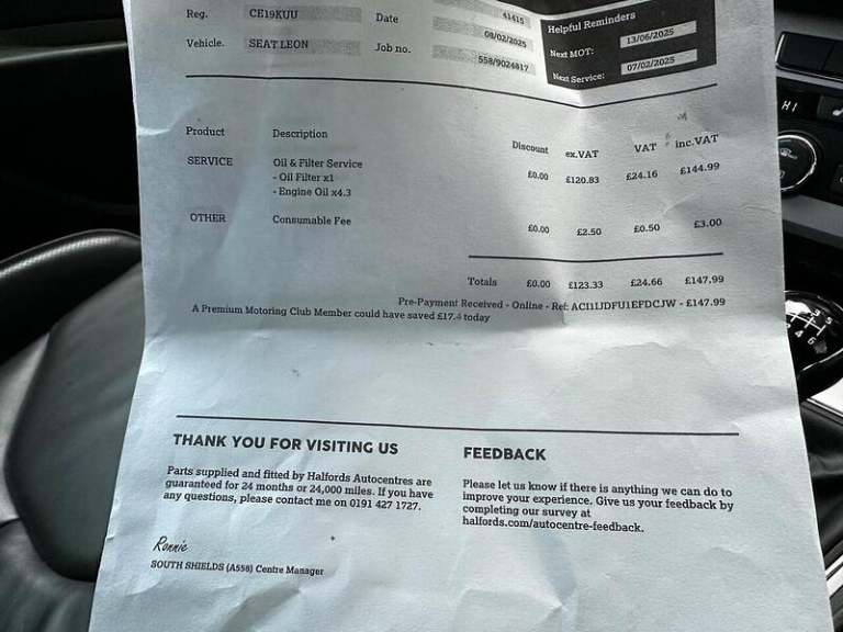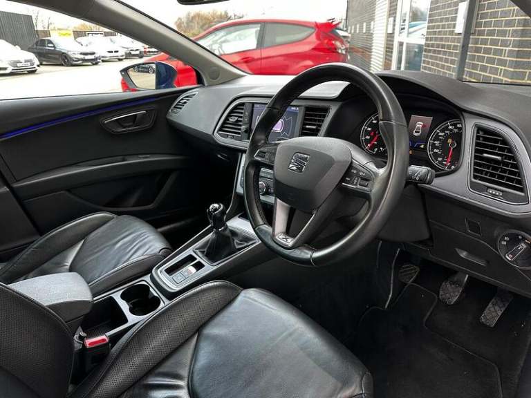12V Power Supply in Centre Console, Navigation System, SEAT Full Link Smartphone Integration - Mirror Link - Apple CarPlay - Google Android Auto, USB Cable for Apple and Android Compatibility, Adaptive Cruise Control - ACC, Digital Clock, Front and Rear Parking Sensors, Gearshift Indicator, Low Fuel Warning Light, Outside Temperature Gauge, Rear View Camera, RPM Counter, Trip Computer, 17in Alloy Wheels - Dynamic 30-1, Body-Coloured Door Handles, Body-Coloured Door Mirrors with Integrated LED Indicators, Dark Tinted Rear Windows, Electrically Adjustable and Heated Door Mirrors, Electrically Foldable Exterior Mirrors with Parking Position and Passenger-Side Mirror with Lowering, Emergency Tyre Repair Kit, Front and Rear Electric Windows, Front Grille Hotstamping, High Gloss Black B and C Pillars, Radiator Grille Frame in Chrome, Radiator Grille in Chrome, Visual Twin Exhaust Pipes, Window Surrounds - Chrome, Full LED Headlights, Lights Left On Warning Buzzer, Boot Storage Net, Cargo Rings in the Boot, Convenience Pack Plus, Driver and Passenger Seat Height Adjustment, Driver and Passenger Sunvisor with Covered and Illuminated Mirrors, Drivers Seat Lumbar Adjustment, Dual Zone Climate Control, Front Seat Back Storage Pockets, Front Sports Seats, High Centre Console, Illuminated Aluminium Front Door Sill with XCELLENCE Logo, Instrument Lighting with Brightness Control, Interior Chrome Detailing, Interior XCELLENCE - Black - Ice Metal, Leather Steering Wheel with XCELLENCE Logo, LED Interior Illumination Pack, Multi Coloured Ambient Lighting, Seats - Passenger Lumbar Adjustment, Split Folding Rear Seats 60-40 with Armrest, Storage Box Under Driver and Front Passenger Seat, Two Height-Adjustable Front and Rear Headrests, Winter Pack, Comfort Suspension, Electro-Mechanical Power Steering, Electronic Differential Lock System - XDS, 7 Airbags, ABS and Traction Control System - TCS - Electronic Stability Control - ESC - and Electronic Differential Lock System - XDS, Alarm - Volumetric, Electric Parking Brake Including Autohold Function, ESC - Electronic Stability Control and Tyre Pressure Warning Light Indicator, Front Assist with Pedestrian Protection, Hill Hold Control, ISOFIX Points in Outer Rear Seats with Top Tether Anchorage Points, Keyless Entry and Go - KESSY and Wireless Phone Charger, Multi-Collision Braking System, Remote Central Locking with Deadlocks, Seatbelt Reminder - Front, Two Folding Keys with Window Open-Close - Door and Boot Opening Functionality, Two Remote Keys with Window Open-Close - Door Mirror Folding and Boot Opening Functionality.This 2019 SEAT Leon TSI EVO XCELLENCE is a superb example of a well maintained and popular hatchback. It features a responsive 1.5 litre petrol engine, meeting Euro 6 emissions standards, and comes in the desirable XCELLENCE trim. Inside, you'll find the convenience of SEAT Full Link smartphone integration, allowing seamless use of Apple CarPlay and Google Android Auto, alongside keyless entry and go with a wireless phone charger. For added ease, it includes a rear view camera with parking assistance and dual zone climate control to keep everyone comfortable.The SEAT Leon TSI EVO XCELLENCE offers a compelling blend of practicality and efficiency. Its acceleration from 0 to 62 miles per hour in just 9.4 seconds demonstrates its lively performance. This model also boasts low CO2 emissions, making it an economical choice. Furthermore, the generous boot space provides ample room for luggage or shopping, highlighting its versatility for everyday life and longer journeys.