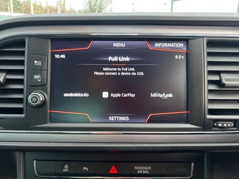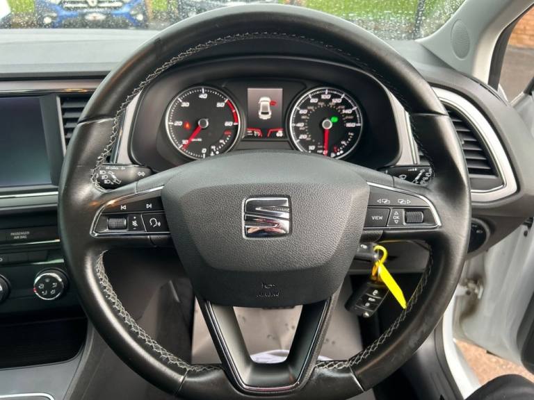 .White, 12V Power Supply in Centre Console, 17in Alloy Wheels - Dynamic 30-3, 7 Airbags, ABS and Traction Control System - TCS - Electronic Stability Control - ESC - and Electronic Differential Lock System - XDS, Air Conditioning, Alarm - Volumetric, Body-Coloured Door Handles, Body-Coloured Door Mirrors with Integrated LED Indicators, Boot Storage Net, Cargo Rings in the Boot, Comfort Suspension, Cruise Control, Dark Tinted Rear Windows, Digital Clock, Driver and Passenger Seat Height Adjustment, Driver and Passenger Sunvisor with Covered and Illuminated Mirrors, Drivers Seat Lumbar Adjustment, ESC - Electronic Stability Control and Tyre Pressure Warning Light Indicator, Electric Parking Brake Including Autohold Function, Electrically Adjustable and Heated Door Mirrors, Electro-Mechanical Power Steering, Electronic Differential Lock System - XDS, Emergency Tyre Repair Kit, Front Assist with Pedestrian Protection, Front Comfort Seats, Front Fog Lights with Cornering Function, Front Seat Back Storage Pockets, Front and Rear Electric Windows, Front and Rear Parking Sensors, Gearshift Indicator, Halogen Headlamps with Small LED Daytime Running Lights, Hidden Exhaust Pipe, High Centre Console, High Gloss Black B and C Pillars, Hill Hold Control, ISOFIX Points in Outer Rear Seats with Top Tether Anchorage Points, Illuminated Glove Box - Regular Bulbs, Instrument Lighting with Brightness Control, Interior Chrome Detailing, Interior SE Black - Dark Grey - Ice Metal, Leather Steering Wheel and Gear Knob, Lights Left On Warning Buzzer, Low Fuel Warning Light, Multi-Collision Braking System, Navigation System, Outside Temperature Gauge, RPM Counter, Radiator Grille Frame in Chrome, Radiator Grille in Black, Reading Lights - Front and Rear - Illuminated Boot, Remote Central Locking with Deadlocks, SEAT Full Link Smartphone Integration - Mirror Link - Apple CarPlay - Google Android Auto, Seatbelt Reminder - Front, Split Folding Rear Seats - 60-40, Storage Box Under Drivers Seat, Trip Computer, Two Folding Keys with Window Open-Close - Door and Boot Opening Functionality, Two Height-Adjustable Front and Rear Headrests, Two Remote Keys with Window Open-Close and Boot Opening Functionality, USB Cable for Apple and Android Compatibility, USB Media Cable