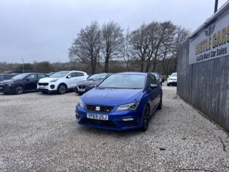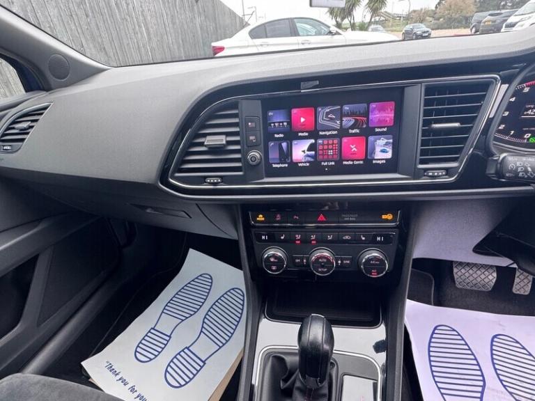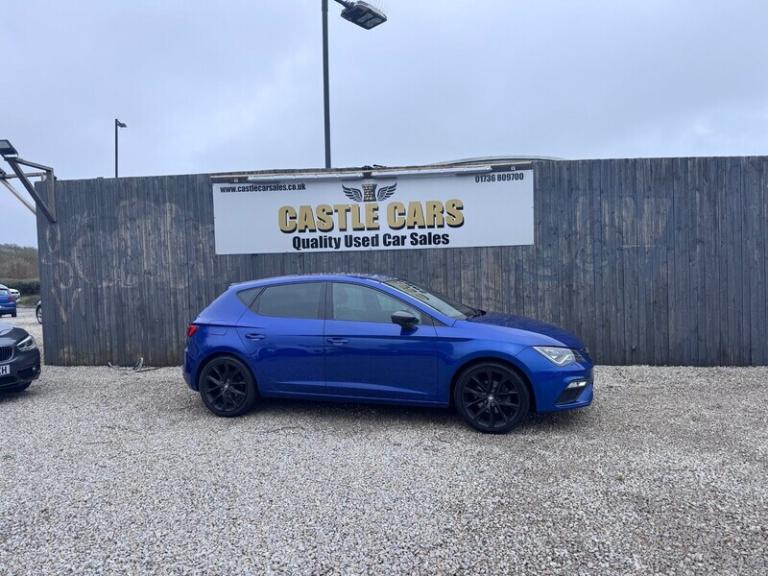 We are pleased to offer for sale this SEAT Leon FR Black Edition 2019, 2.0TDI, 5 Door Hatchback, Automatic Blue with 18"" Alloy Wheels, Automatic Headlights, Front and Rear Parking Sensors, Rear Privacy Glass, Sports Suspension, and Front Fog Lights58,696 miles Good Service History, will be sold with Brand New 12 Months MOT, and is £195 Per Year Road Tax2 Keys ULEZ Compliant (at the time of writing) This vehicle offers Black Leather Interior with Black Suede Inserts and has many features including: Air Conditioning, SEAT Full Link Smartphone Integration - Mirror Link - Apple CarPlay - Google Android Auto, Navigation System, Cruise Control, Door Mirrors - Electrically Adjustable and Heated, ISOFIX Points in Outer Rear Seats with Top Tether Anchorage Points, Heated Front Seats, Cup Holders x2 - Front, Electric Windows - Front and Rear, and Multi-Function Steering WheelGreat Sporty HatchbackPX Vehicles Considered Accept all Major Credit and Debit Cards12 Months Warranty Included - Extended Warranty can be Purchased - Please ask for further information **Finance Available (subject to terms and conditions)** Please call Castle Cars - 01736 809700 or visit [Website URL removed]. 12V Power Supply in Centre Console, Media System Plus, Navigation System, SEAT Full Link Smartphone Integration - Mirror Link - Apple CarPlay - Google Android Auto, Cruise Control, Digital Clock, Front and Rear Parking Sensors, Gearshift Indicator, Low Fuel Warning Light, Outside Temperature Gauge, RPM Counter, SEAT Drive Profile, Trip Computer, Tyre Pressure Monitoring System, 18in Alloy Wheels - Performance Matte 30-2, Bumpers - Exclusive FR Front and Rear, Dark Tinted Rear Windows, Electrically Adjustable Folding and Heated Door Mirrors, Emergency Tyre Repair Kit, Front and Rear Electric Windows, Matte Black Door Mirrors with Integrated LED Indicators, Radiator Grille Frame in Matte Black, Radiator Grille in Black, Visual Twin Exhaust Pipes, Full LED Headlights, Lights Left On Warning Buzzer, Armrest - Front with Storage Compartment, Black Interior Roof Lining, Convenience Pack Plus, Digital Cockpit, Driver and Passenger Seat Height Adjustment, Driver and Passenger Sunvisor with Covered and Illuminated Mirrors, Drivers Seat Lumbar Adjustment, Dual Zone Climate Control, Front Seat Back Storage Pockets, Front Sports Seats, Illuminated Aluminium Front Door Sill with Trim Logo, Instrument Lighting with Brightness Control, Leather Gear Knob, LED Interior Illumination Pack, Multi Coloured Ambient Lighting, Seats - Passenger Lumbar Adjustment, Split Folding Rear Seats 60-40 with Armrest, Steering Wheel - Flat-Bottomed Perforated Leather with Red Stitching and FR Logo, Steering Wheel-Mounted Gearshift Paddles, Storage Box Under Driver and Front Passenger Seat, Two Height-Adjustable Front and Rear Headrests, Winter Pack, Electro-Mechanical Progressive Power Steering, Sports Suspension, 7 Airbags, ABS and Traction Control System - TCS - Electronic Stability Control - ESC - and Electronic Differential Lock System - XDS, Alarm - Volumetric, Electric Parking Brake Including Autohold Function, Front Assist with Pedestrian Protection, ISOFIX Points in Outer Rear Seats with Top Tether Anchorage Points, Multi-Collision Braking System, Seatbelt Reminder - Front