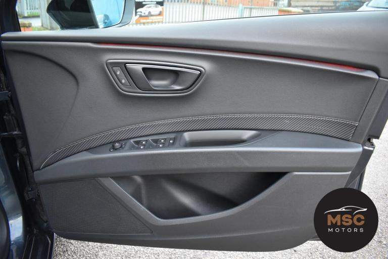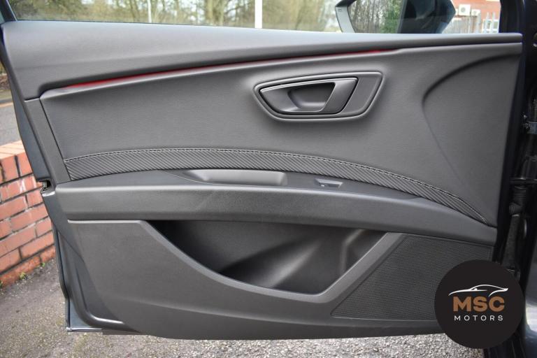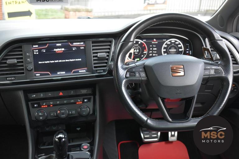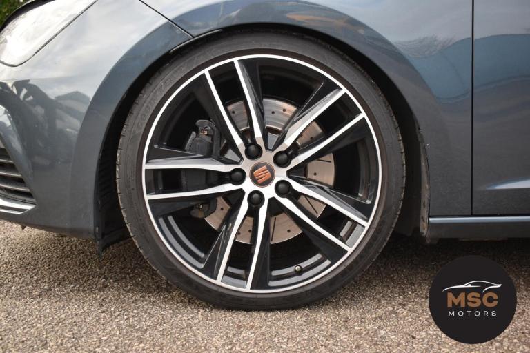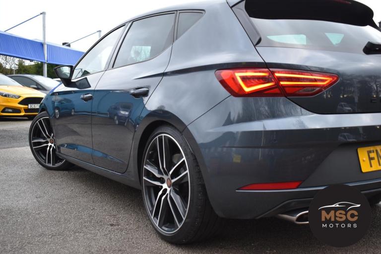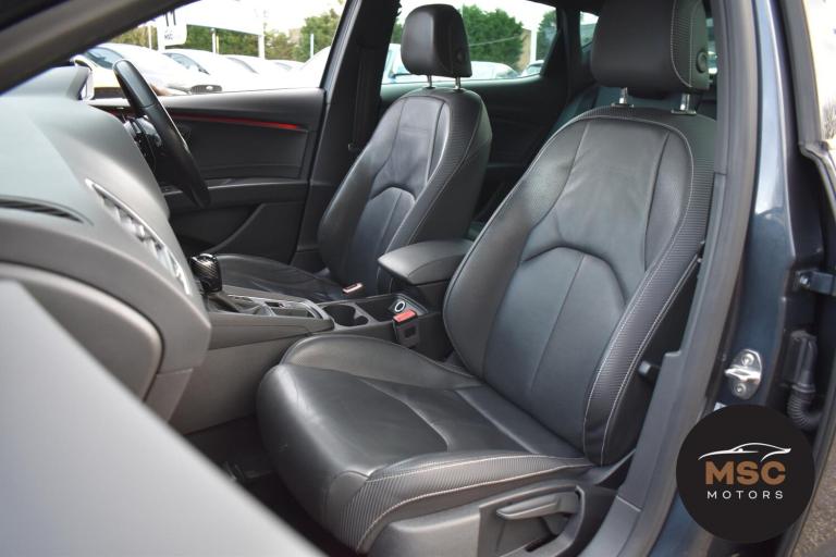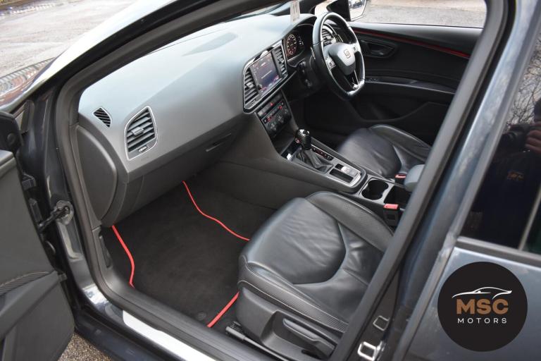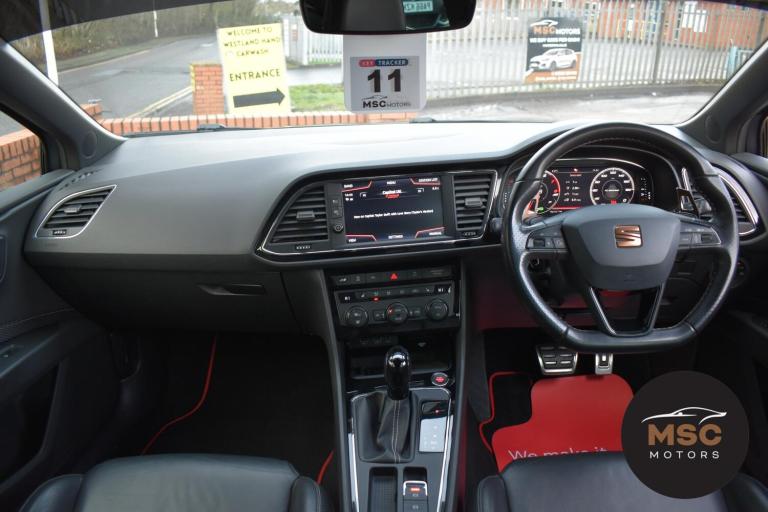 This Leon Cupra is in fantastic condition for its age and mileage and it’s also got a brilliant service history as the gent who part exchanged it with us as always taken it back to Seat for its servicing every 10,000 miles. It’s got plenty of specification with the front and rear parking sensors to help getting into those tight supermarket spaces, once you are parked you needn’t worry about people catching your wing mirrors as they will fold in electronically. It’s got the full leather interior and both front seats are heated, the drivers seat is electrically adjustable and the seats are in brilliant condition for its mileage. You’ll never get lost again with the built in Sat-Nav or if you’d rather you can mirror the likes of Google Maps, Spotify and Waze from your smart phone using ‘Full Link’ which gives you Apple Car Play and Android Auto. You can listen to music anyway that you please with the DAB radio, Bluetooth for both audio and calls and USB/AUX connectivity. The radar cruise control is a great feature to have and this Cupra has both of its original keys with it. All of our retail cars come with a warranty which you can extend if you wish to, part exchanges are welcome and low rate finance with no deposit options are available. If you have any questions at all then please don’t hesitate to contact us.