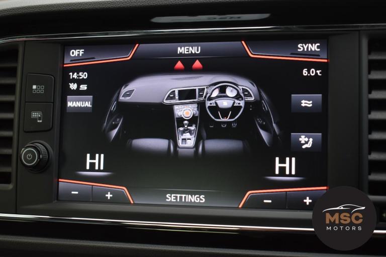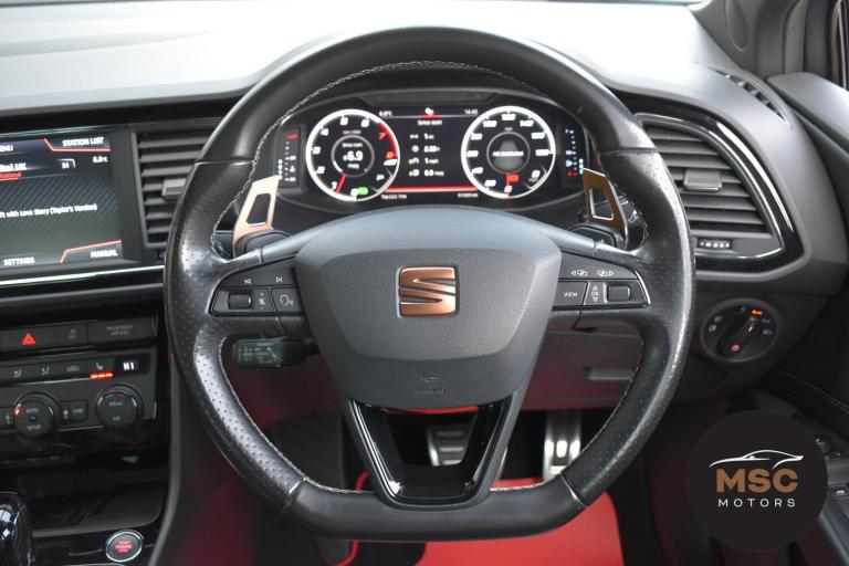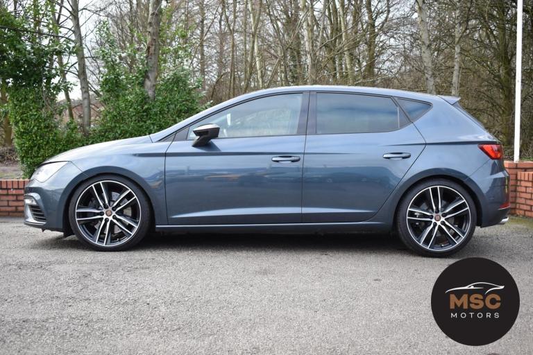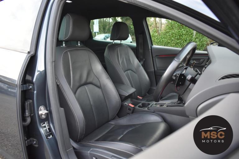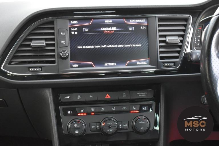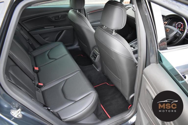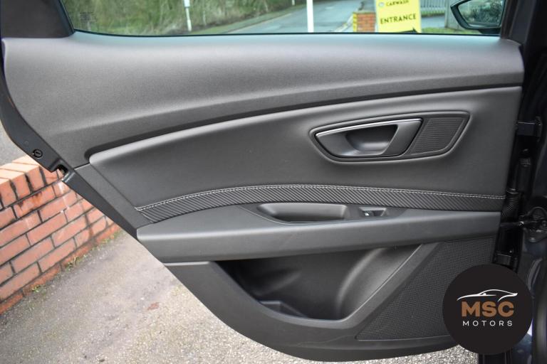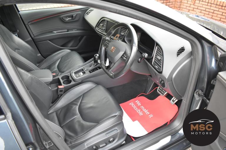 This Leon Cupra is in fantastic condition for its age and mileage and it’s also got a brilliant service history as the gent who part exchanged it with us as always taken it back to Seat for its servicing every 10,000 miles. It’s got plenty of specification with the front and rear parking sensors to help getting into those tight supermarket spaces, once you are parked you needn’t worry about people catching your wing mirrors as they will fold in electronically. It’s got the full leather interior and both front seats are heated, the drivers seat is electrically adjustable and the seats are in brilliant condition for its mileage. You’ll never get lost again with the built in Sat-Nav or if you’d rather you can mirror the likes of Google Maps, Spotify and Waze from your smart phone using ‘Full Link’ which gives you Apple Car Play and Android Auto. You can listen to music anyway that you please with the DAB radio, Bluetooth for both audio and calls and USB/AUX connectivity. The radar cruise control is a great feature to have and this Cupra has both of its original keys with it. All of our retail cars come with a warranty which you can extend if you wish to, part exchanges are welcome and low rate finance with no deposit options are available. If you have any questions at all then please don’t hesitate to contact us.