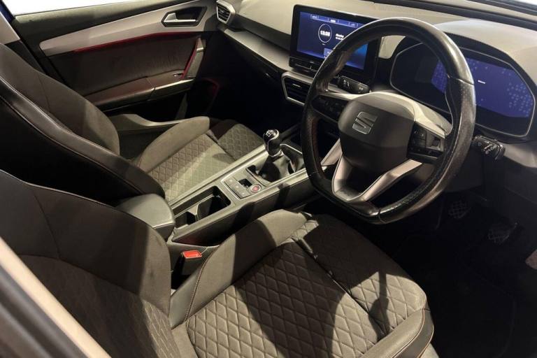 This 2020 SEAT Leon TSI EVO FR boasts an exceptionally low mileage of just 42,000 miles, a clear vehicle history check, and an MOT valid until January 2027, offering excellent peace of mind. This Euro 6 compliant 1.5 litre petrol model comes in the sporty FR trim, featuring a separate daytime running light with automatic headlight control and a coming home feature. For convenience, it includes Park Assist with front and rear parking sensors, and the Media System Plus with navigation and Bluetooth connectivity. Further enhancing the driving experience are LED headlights with dynamic turn signals and Full Link smartphone integration, supporting both wireless Apple CarPlay and wired Android Auto. This SEAT Leon stands out with its impressive fuel economy, achieving up to 50 miles per gallon, which is a significant advantage over many similar vehicles. It also benefits from a low insurance group, making ownership more affordable. Drivers will appreciate the generous boot space, perfect for luggage or shopping, and the low CO2 emissions, indicating a more environmentally conscious choice. These highlights collectively demonstrate how this particular Leon offers a superior combination of efficiency, practicality, and cost effectiveness. Lifetime warranty available on this car, plus a £1,000 finance contribution when you part exchange. Voted UK Car Supermarket of the Year two years running, we offer 0% finance, part exchange, and lifetime warranties across our entire range. Every car is thoroughly inspected before sale and comes with a full history check, so you can buy with complete peace of mind. Buy with confidence on our best finance rates. Proud winners of the CarGurus Top-Rated Dealer 2022 and the MotoNovo Extra Mile Award. .12V Power Supply in Centre Console, 12v Socket in Loadspace, 17in Alloy Wheels - Dynamic Bi-Spoke, Ambient Lighting, Ambient Lighting in Door Trim, Anti-Lock Brakes - ABS, Anti-Theft Alarm System - Interior Monitoring - Backup Horn and Towing Protection, Auto Dimming Rear View Mirror, Brake Control System - ESC and Brake Booster, Chrome Interior Detailing, Cruise Control with Speed Limiter, Dark Tinted Rear Windows, Digital Cockpit, Driver and Front Passenger Airbags with Front Passenger Airbag De-Activation - Front Side - Curtain Airbag, Driver and Passenger Seat Manual Height Adjustment, Driver and Passenger Seat with Lumbar Adjustment, Electric Parking Brake, Electrically Adjustable Folding and Heated Door Mirrors, Electro-Mechanical Power Steering - Speed-Sensitive, Electronic Differential Lock System - XDS - Dynamic Traction Support, Emergency Tyre Repair Kit, Extended Safety System, Fabric - Two Tone Grey with Lava Red Stitching, Four USB Type C Ports, FR Sport Bumpers, Front and Rear Electric Windows, Front and Rear Reading Lights - Four, Front Assist, Front Centre Armrest, Front LED Fog Lights with Cornering Function, Front Seat Back Storage Pockets, Full Link Smartphone Integration - Mirror Link - Wireless Apple CarPlay - Wired Google Android Auto, Height-Adjustable Front and Rear Headrests - with Third Headrest in Rear, Illuminated Front Door Sill, Interior Lighting, ISOFIX Points in Outer Rear Seats with Top Tether Anchorage Points, KESSY Go - Keyless Start, Lane Keeping System, Leather Flat Bottomed - Perforated Steering Wheel with Red Stitching and FR Logo, LED Headlights with Dynamic Turn Signals, Lockable Tailgate, Media System Plus with Navigation, Multi Coloured Ambient Lighting, Mystery Blue, Park Assist including Front and Rear Parking Sensors, Rain Sensing Wipers, Rear Bench Seats with 60-40 Split and Armrest, Rear Fog Light, Roof Rails - Black, SEAT Connect App, SEAT Drive Profile, Seatbelt Reminder - Front and Rear, Separate Daytime Running Light with Automatic Headlight Control and Automatic Coming Home Feature, Seven Speakers, Sliding Boot Cover, Sports Suspension, Start-Stop and Regenerative Braking, Sunvisors with Illuminated Mirrors, Three-Zone Climate Control, Tiredness Recognition System, Tool Kit, Tyre Pressure Monitoring System, Wireless Device Charger