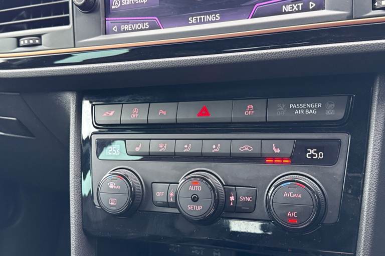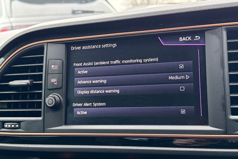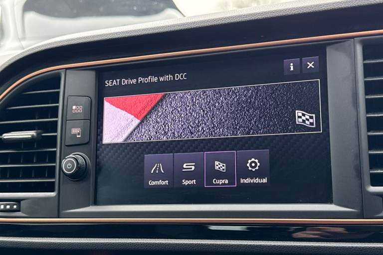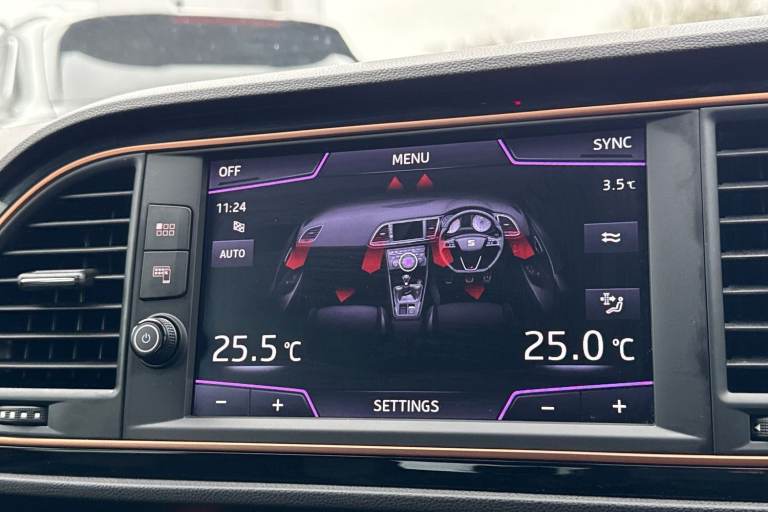 This 2020 SEAT Leon TSI Cupra R ST offers exhilarating performance with its four wheel drive system and a powerful 2.0 litre petrol engine. As a Euro 6 compliant vehicle, it meets modern emissions standards. Inside, youll find SEAT Full Link Smartphone Integration, allowing seamless use of Mirror Link, Apple CarPlay, and Google Android Auto. Convenience is enhanced with Keyless Entry and Go, a wireless phone charger, and dual zone climate control to keep everyone comfortable. For effortless journeys, Adaptive Cruise Control is fitted, and parking is made simpler with a rear view camera. The Cupra R ST variant stands out with its impressive acceleration, achieving 0-62mph in just 4.9 seconds, demonstrating its dynamic capabilities. This performance, combined with its spacious boot, makes it a versatile choice for both daily driving and longer trips. The inclusion of features like Adaptive Cruise Control and a rear view camera highlights how this SEAT Leon provides a more advanced and user friendly driving experience compared to many other vehicles in its class.