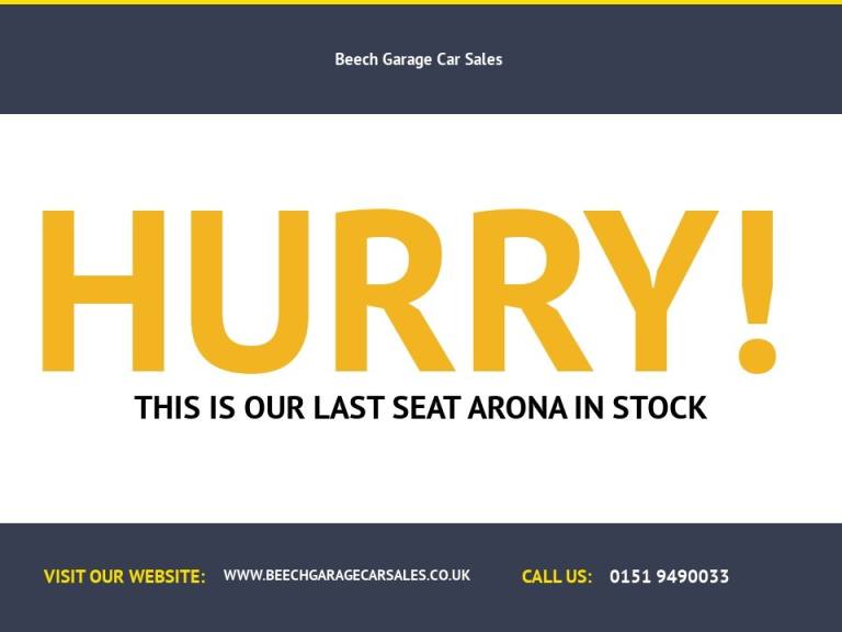 This 2021 SEAT Arona TSI EVO SE Technology is a superb example, having been owned by just one person and boasting a clear vehicle history check. This stylish compact SUV features a responsive 1.0 litre petrol engine, meeting Euro 6 emissions standards. Inside, youll find comfort with air conditioning and seamless connectivity through Full Link smartphone integration, supporting both Android Auto and Apple CarPlay. Enjoy your music and calls with the Bluetooth audio streaming and handsfree system. The Arona also benefits from Eco LED automatic headlights and LED daytime running lights for enhanced visibility, along with the Connectivity Pack Plus which includes convenient wireless phone charging. With an impressive fuel economy of 53 miles per gallon, this Arona offers excellent value for money. Its low CO2 emissions and low insurance group rating further highlight its cost effectiveness, making it a more economical choice compared to many other vehicles in its class. This combination of efficient performance, modern technology, and favourable running costs makes the SEAT Arona TSI EVO SE Technology a smart and practical option. Buying From Beech Garage Car Sales LTD Over 25 Years of experience and exceptional customer service, great cars at a great price! All of our cars are thoroughly checked during preparation to the highest standards by independent technicians, to ensure everything is in order before going on sale. Every vehicle will come with a full years MOT with no advisories, to keep you safe and give you peace of mind when shopping with Beech Garage Car Sales LTD. Please feel free to give us a call to discuss any vehicles you have seen on our website, we also buy and source any vehicles. 01519490033.17in Alloy Wheels - Dynamic Machined, Air Conditioning, AM-FM Radio with DAB - Digital Audio Broadcasting, Anti-Lock Braking System - ABS, Black Roof Rails and Window Surround, Bluetooth Audio Streaming with Handsfree System, Body Coloured Door Mirrors, Coloured Air Vent, Connectivity Pack Plus, Contrast Roof, Cruise Control with Speed Limiter, Dimming Interior Rear View Mirror, Double Boot Floor, Driver and Front Passenger Airbags, Dust and Pollen Filter, EBA - Emergency Brake Assist and Front Assist, Eco LED Automatic Headlights and LED Daytime Running Lights, Electrically Adjustable Door Mirrors, Electronic Engine Immobiliser, Electronic Stability Control - ESC, Emergency Tyre Repair Kit, Front and Rear Electric Windows, Front and Rear Seatbelt Reminder, Front Courtesy Light with Front Reading Lights, Full Link Smartphone Integration, Grey Interior Roof, Height Adjustable Front Seats, Hidden Exhaust Pipe, Hill Hold Control, Interior Chrome Pack, ISOFIX Points in Outer Rear Seats with Top Tether Anchorage Points, Lane Keeping System, Leather Steering Wheel - Flat Bottomed - Gear Knob and Handbrake Lever, LED Daytime Running Lights, Locking Wheel Bolts, Power Assisted Steering, Protective Side Moulding, Rear Fog Light, Rear Parking Sensors, Rear Spoiler, RPM Counter, SEAT Connect - Safety - Service - Remote - Online, Side Airbag in Front with Curtain Airbag, Six Speakers, Split Folding Rear Seats - 60-40, Three-Point Seatbelts on All Rear Seats, Tiredness Recognition System, Titan Black Dashboard, Two Front and Three Rear Height-Adjustable Headrests, Tyre Pressure Monitoring System