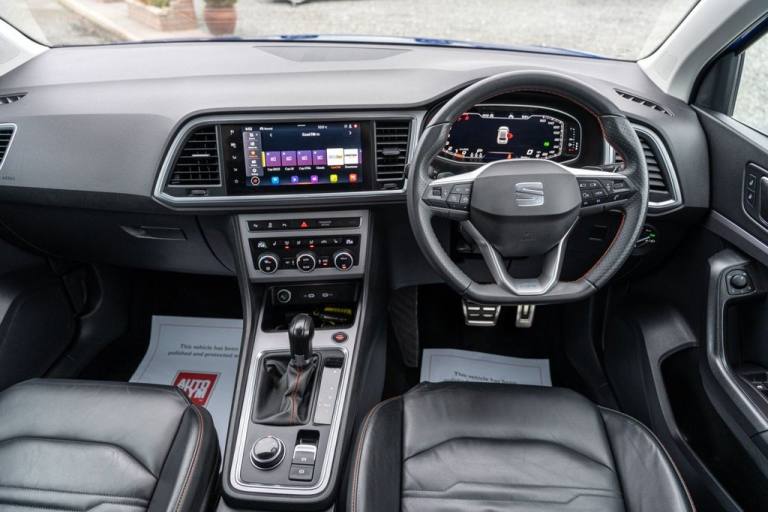 .Full leather interior, Electric and memory seats, Low mileage, Automatic, Apple CarPlay and Android Auto, 12V Socket in Front, 19in Alloy Wheels - Exclusive Machined with Decorative Inserts, Advanced Multi Colour Interior Ambient Lighting and LED Interior Illumination, Alarm - Perimeter and Interior Monitoring, Anti-Lock Braking System - ABS, Convenience Pack, Cruise Control, Dark Tinted Rear Windows, Daytime Running Lights, Digital Cockpit, Door Mirrors with Welcome Light Silhouette, Driver and Front Passenger Airbags, Driver and Passenger Seat with Lumbar Adjustment, Drivers Knee Airbag, Dual Zone Climate Control, Dynamic Headlight Range Control with Self-Adjusting whilst Driving, Electric Drivers Seat, Electric Parking Brake Including Autohold Function, Electrically Adjustable Folding and Heated Door Mirrors, Electronic Differential Lock System - XDS, Electronic Stability Control - ESC, Front Assist - City Emergency Braking and Pedestrian Protection, Front Centre Armrest, Front Grille Frame in Cosmo Grey, Front LED Fog Lights with Cornering Function, Front Passenger Airbag De-Activation, Front Seat Back Storage Pockets, Front Side Airbags, Front and Rear Electric Windows, Front and Rear Seatbelt Reminder, Full LED Headlights, Full Link Smartphone Integration, Heated Front Seats, Height Adjustable Passenger Seat, Height-Adjustable Drivers Seat, Hill Hold Control, ISOFIX Points in Outer Rear Seats with Top Tether Anchorage Points, Illuminated Aluminium Front Door Sill with Trim Logo, Interior Chrome Detailing, Interior Lighting, KESSY - Keyless Entry and Go, LED Taillights with Dynamic Indicators, Leather Gear Knob, Leather Steering Wheel, Locking Wheel Bolts, Navigation System, Park Assist, Pedals in Aluminium, Power Steering, Rear Fog Light, Rear Spoiler, Roof Rails - Chrome, SEAT Connect - Safety - Service - Remote - Online, Simulated Exhaust Pipes, Split Folding Rear Seats - 60-40, Steering Wheel-Mounted Gearshift Paddles, Sunglasses Storage Compartment in Roof Console, Tiredness Recognition System, Traction Control System - ASR, Two Curtain Airbags, Tyre Pressure Monitoring System, Wheel Arch Surrounds - Body Colour, Window Surrounds - Chrome, Wireless Phone Charger